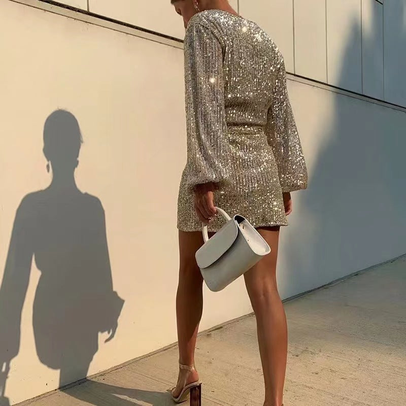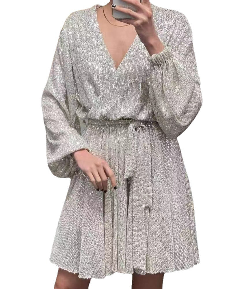 ضع لمسة فليرتي على ملابسك الليلية ترتدي فستان التفاف الطول في الأكمام الطويلة للسيدات. يتميز هذا الفستان القصير بنسيج يتدفق حول الجسم باستخدام الحزام في الوسط.
