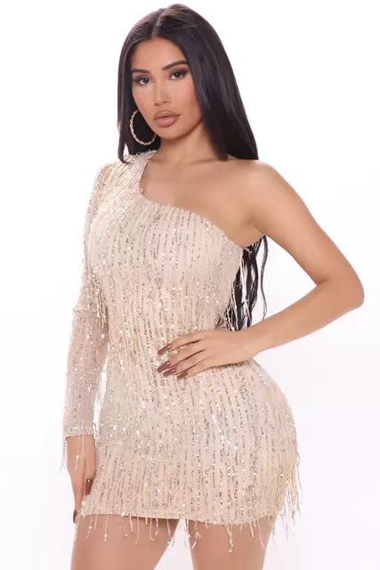 تبرز على حلبة الرقص مرتديًا اللباس المصغر للنساء من الكتف اللامع الذي يعانق منحنياتك لإظهار شخصيتك. إنه يأتي في اختيارك من الشمبانيا أو الأسود.
