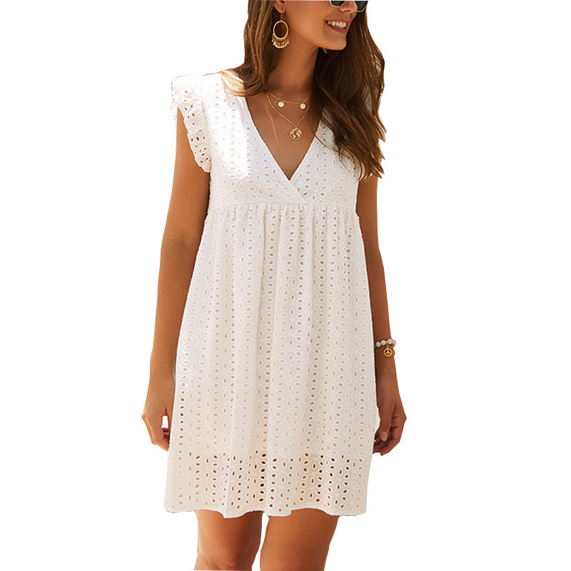 ابق منسقًا ولطيفًا هذا الصيف في فستان صغير من الفستان الصيفي الصيفي. إنه يتميز بطبقة من القماش المثقب للتنفس والأناقة وهو متوفر بعدة ألوان.