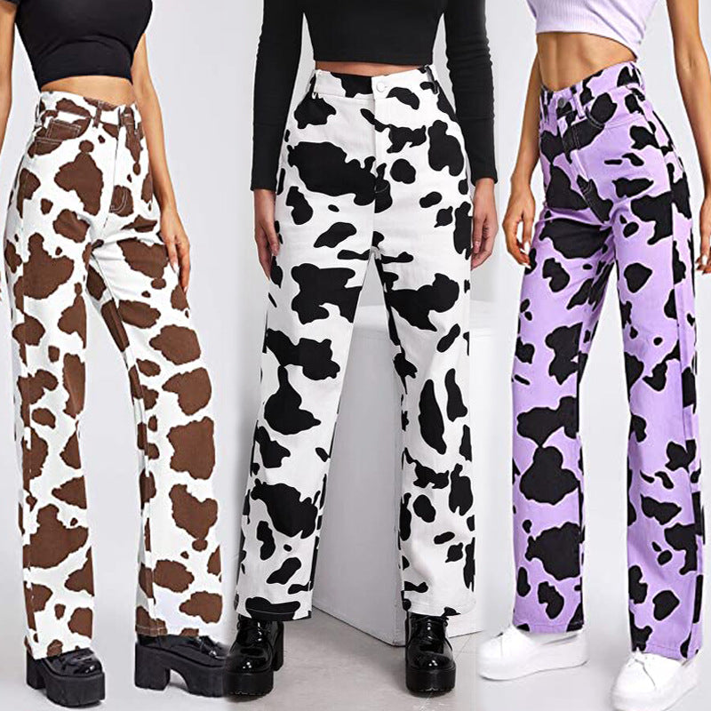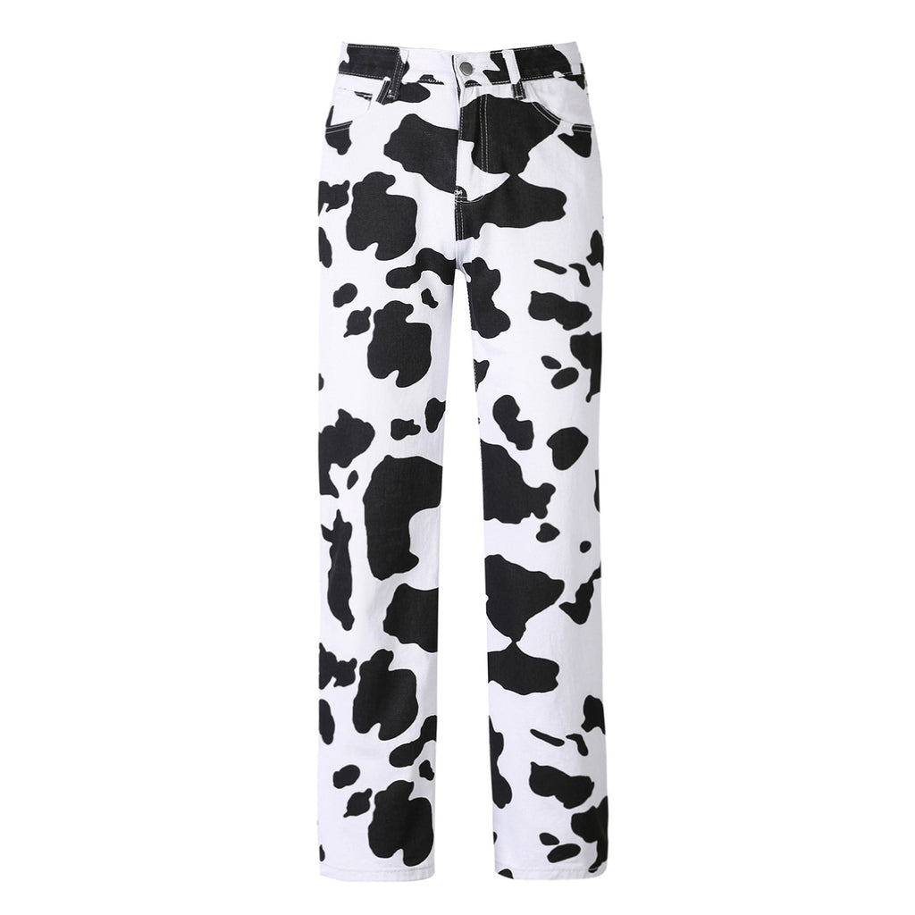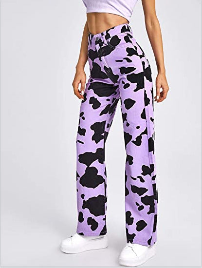 طباعة البقرة النسائية سراويل أرجل مستقيمة