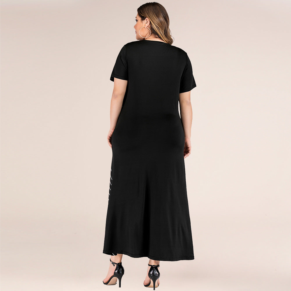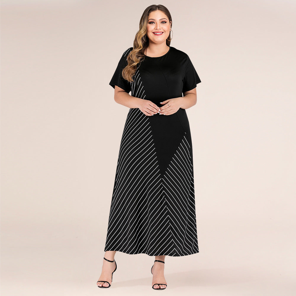 Women's Loose Fitting Black and White Striped Maxi Dress