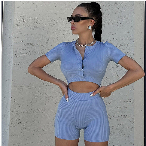 Feel comfortable and cool this summer wearing the Women's Two Piece Crop Top and Shorts Set featuring breathable, soft material, available in three different colors.