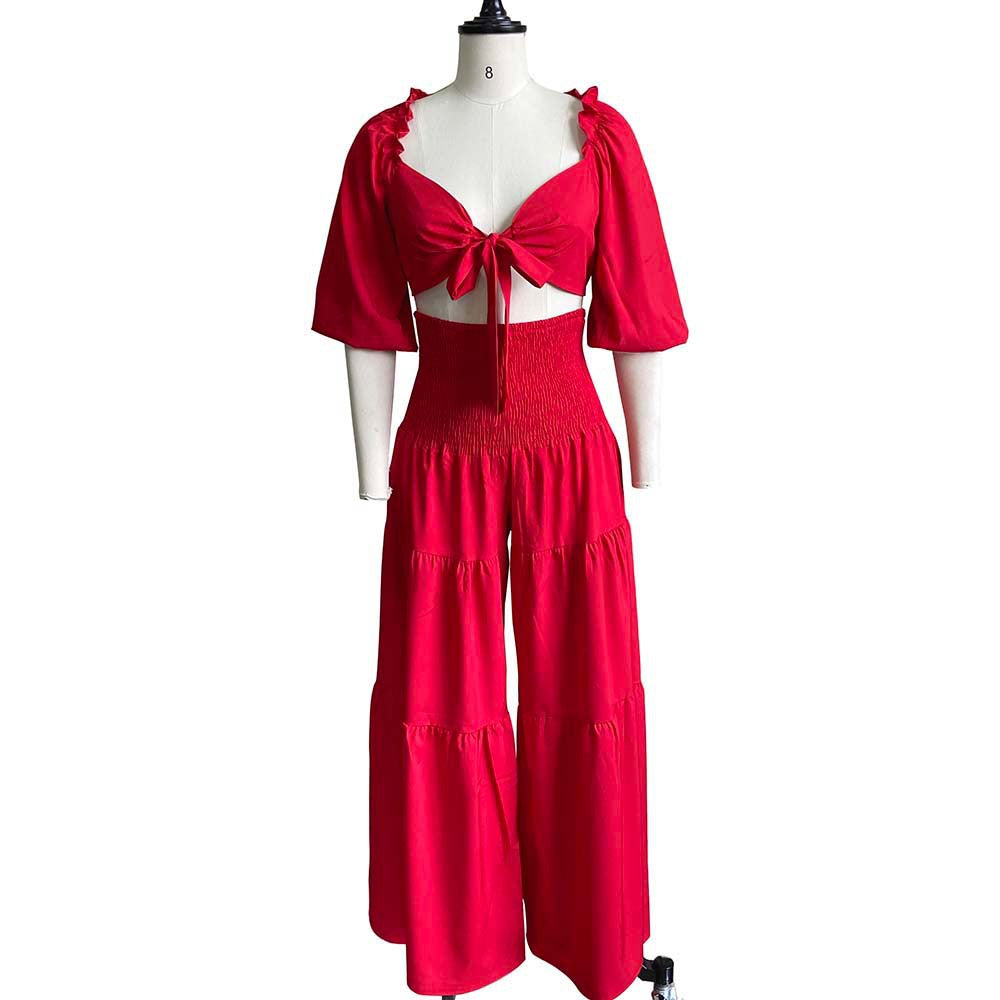 Women's Two Piece Cropped Top and Loose fitting Pants Set