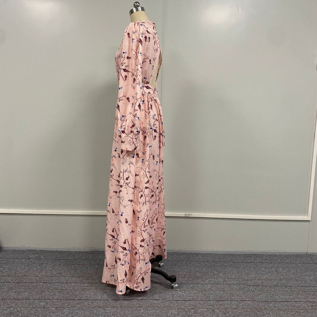 Verleihen Sie Ihren typischen formellen Tages-Looks ein zartes Stück mit dem babypinkfarbenen Maxikleid mit geraffter Taille und Blumenmuster für Damen, das über lange Ärmel und einen O-Ausschnitt verfügt. Die hellrosa Farbe ist schmeichelhaft und mädchenhaft.
