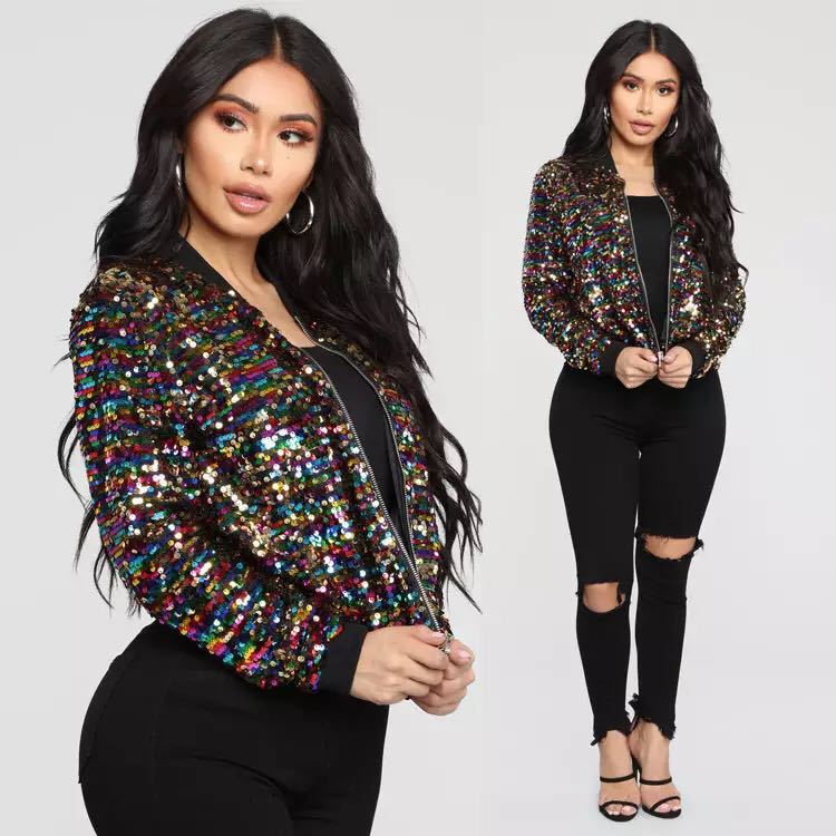 Die glitzernde Blazer-Jacke für Damen mit gerafften Ärmeln ist eine funkelnde, schimmernde Ergänzung für jedes Ensemble. Es ist in Metallic-Farboptionen Ihrer Wahl erhältlich, die Ihr Erscheinungsbild sofort verbessern.