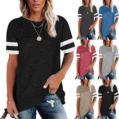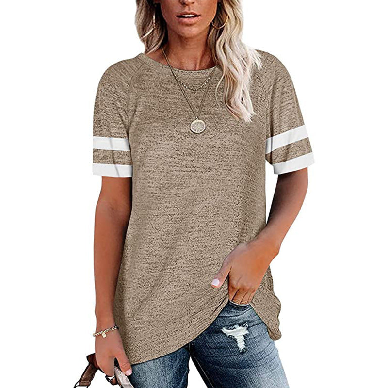 Deportiva y elegante, esta camiseta holgada de manga corta a rayas para mujer es la elección perfecta para cualquier salida informal de verano. Está elaborado con materiales blandos y disponible en varios colores.