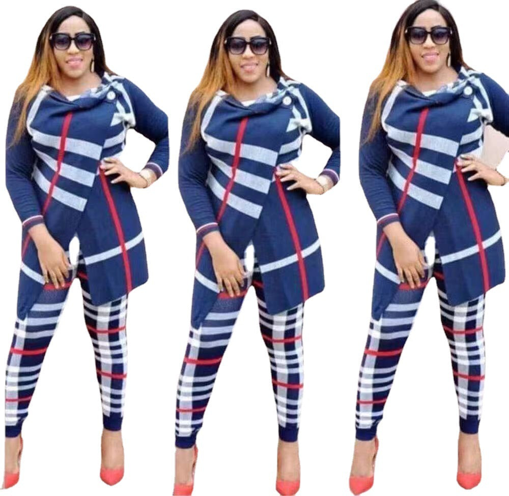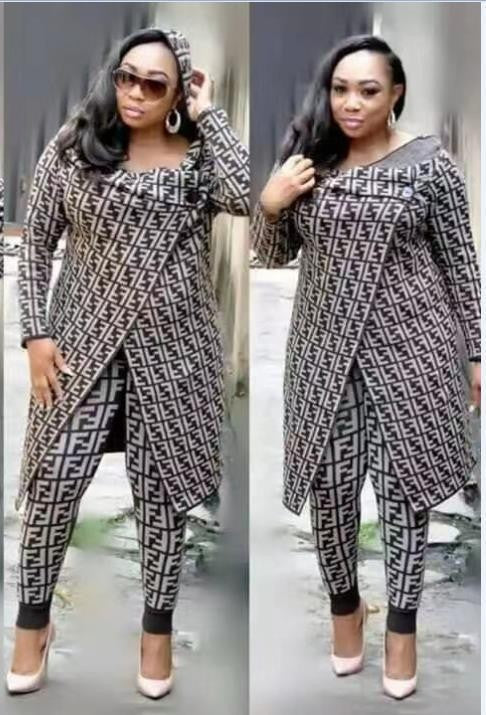 Luce lo mejor posible con el elegante conjunto estampado de dos piezas de abrigo y calzas para mujer que viene disponible en tu elección de colores y diseños para reflejar tu estilo único.