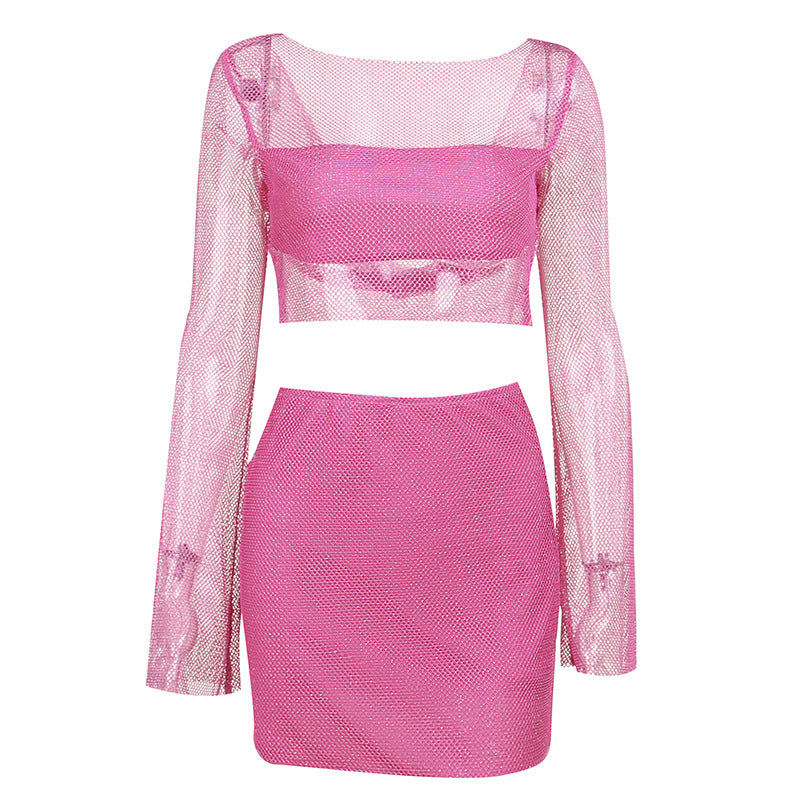 Tome sus señales de estilo del pasado con el juego retro de dos piezas de las mujeres con mangas y falda. El material semi-bar es coqueto y revelador.