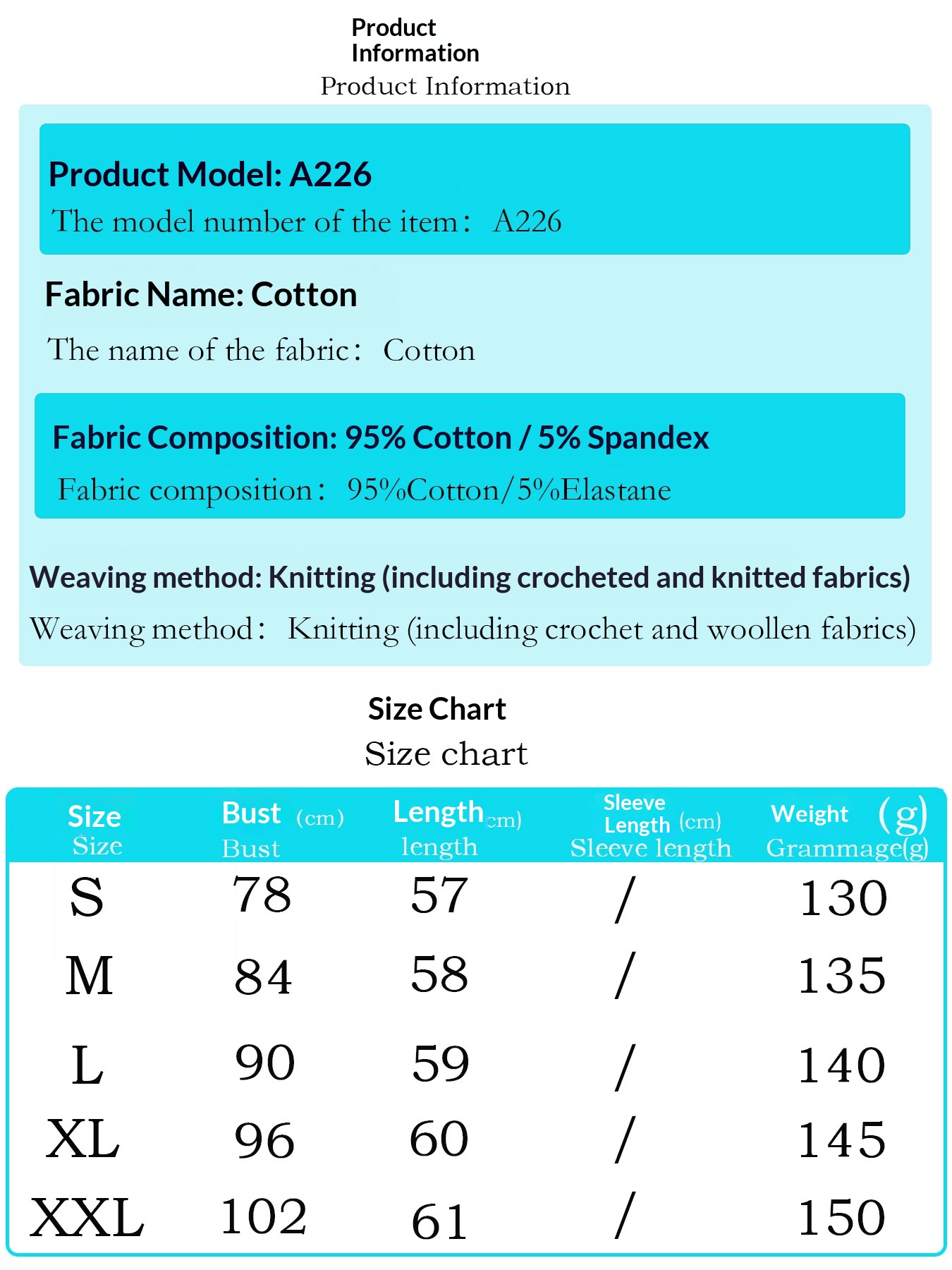 • Sizes: S, M, L, XL, XXL