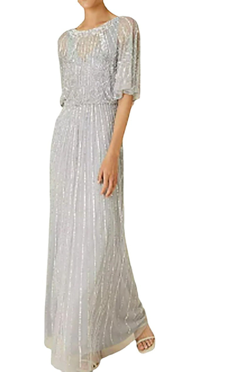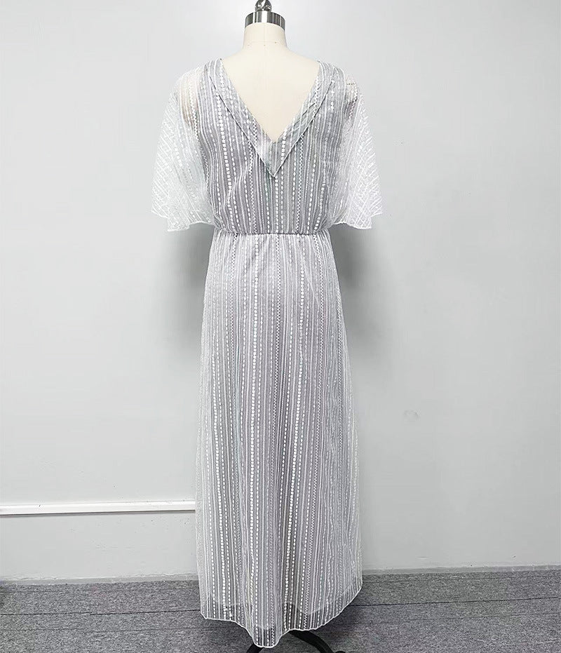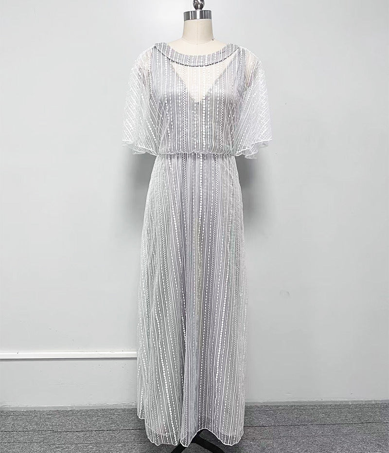 Este vestido largo largo para mujer con mangas recortadas y corpiño holgado es un lindo vestido semi-casual para cualquier ocasión. El vestido largo es fluido y presenta una tela sedosa.