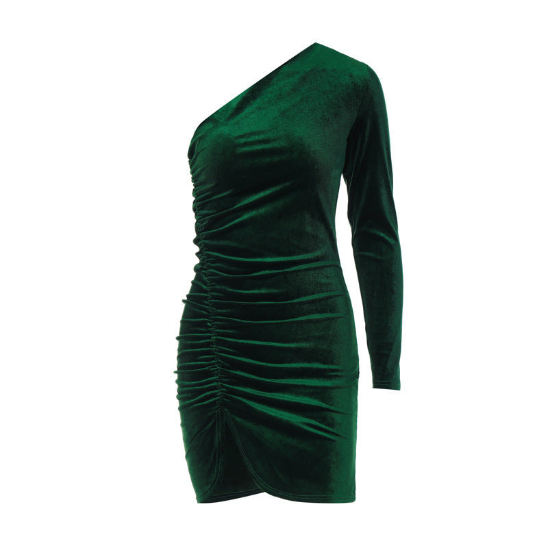 Mira elegante y atractiva en el vestido midi asimétrico de las mujeres con hendidura del muslo. Este vestido único presenta solo una manga larga para una silueta intrigante.