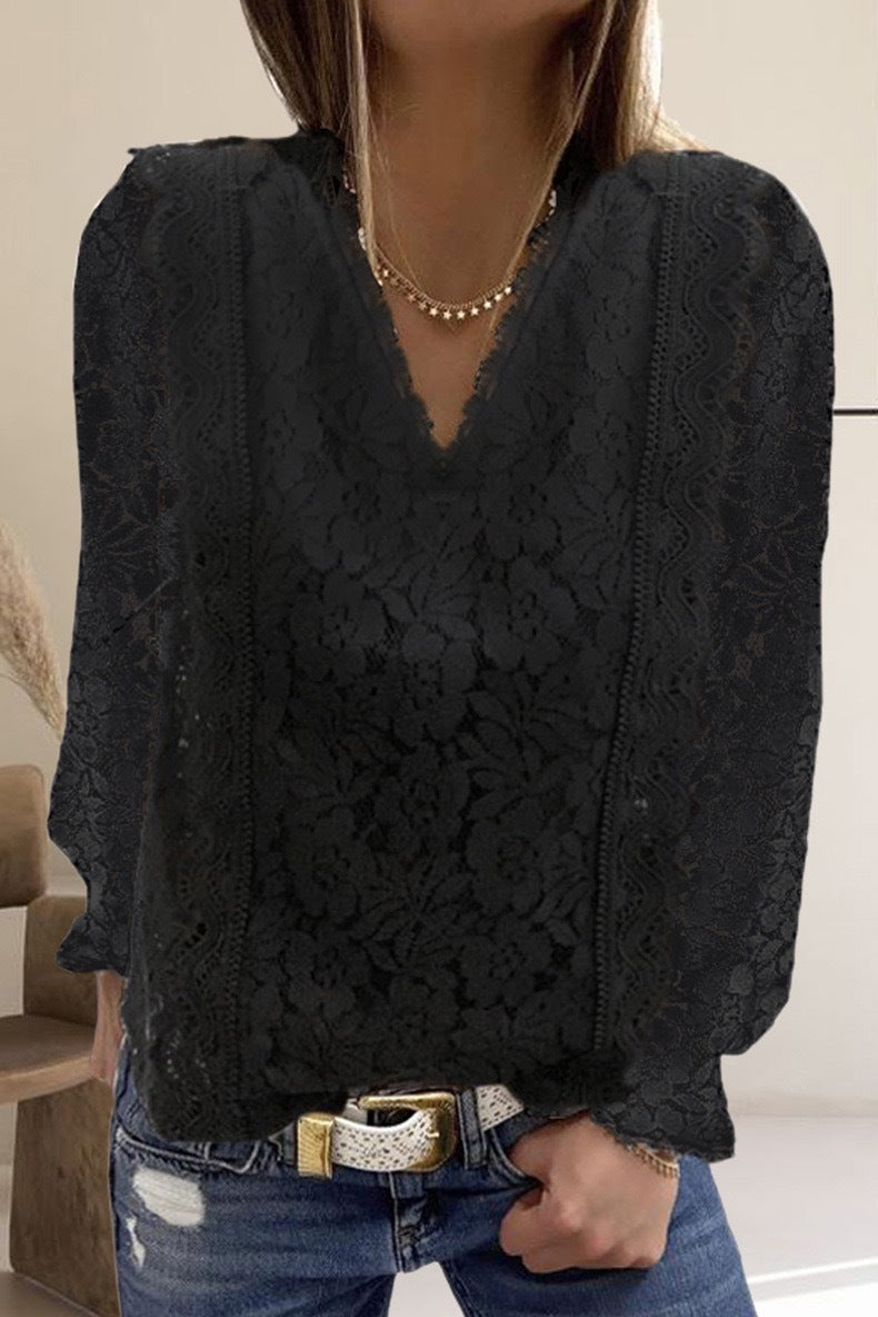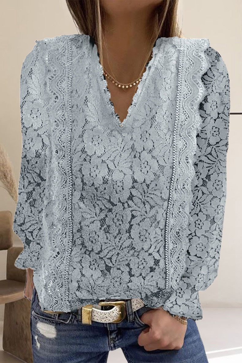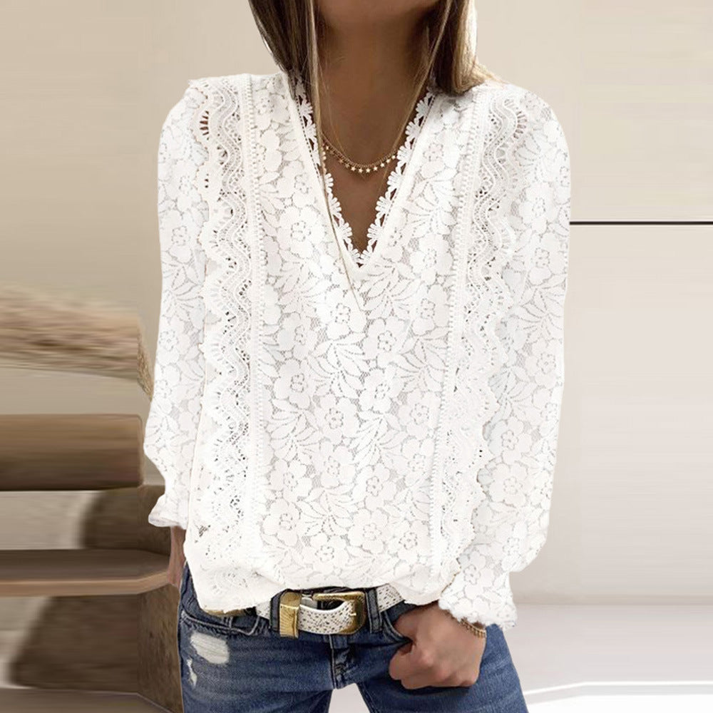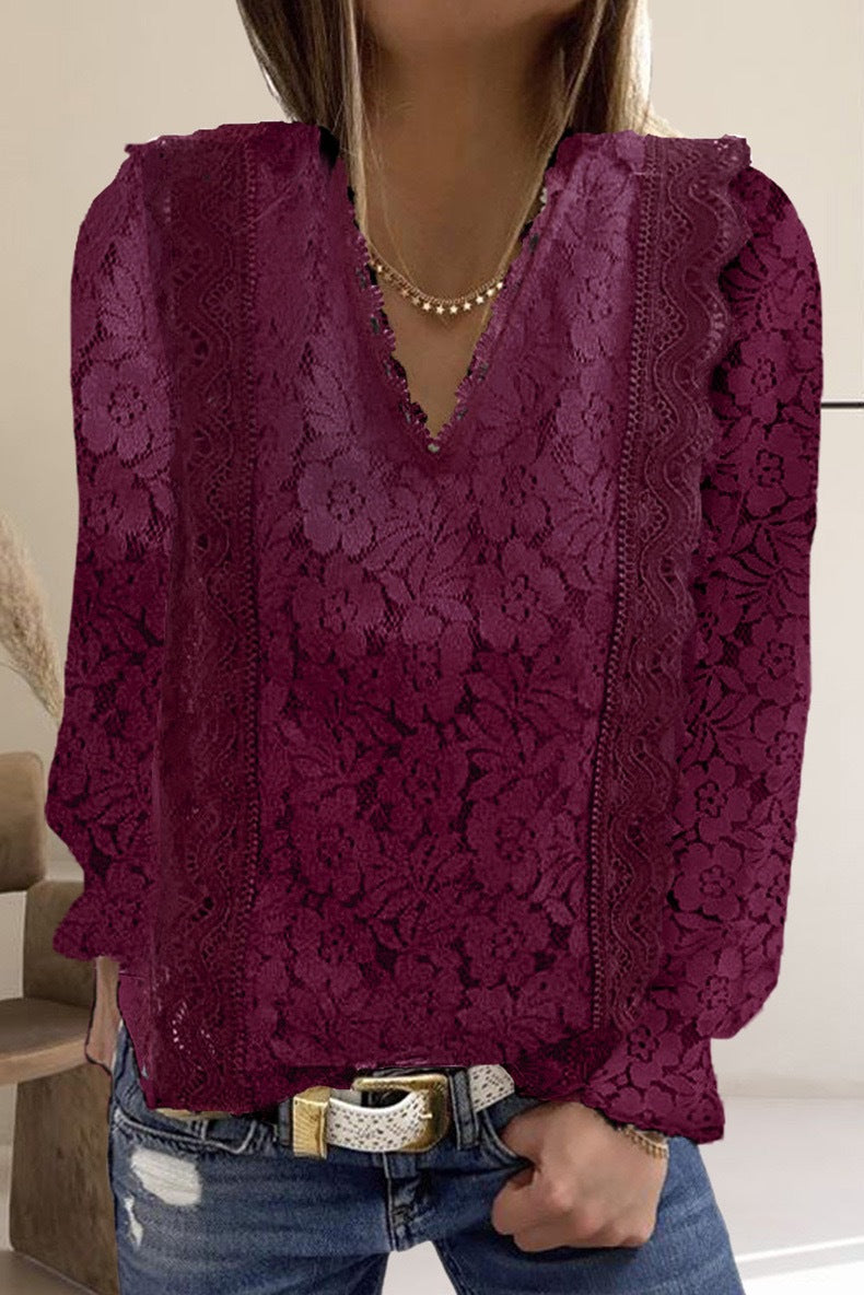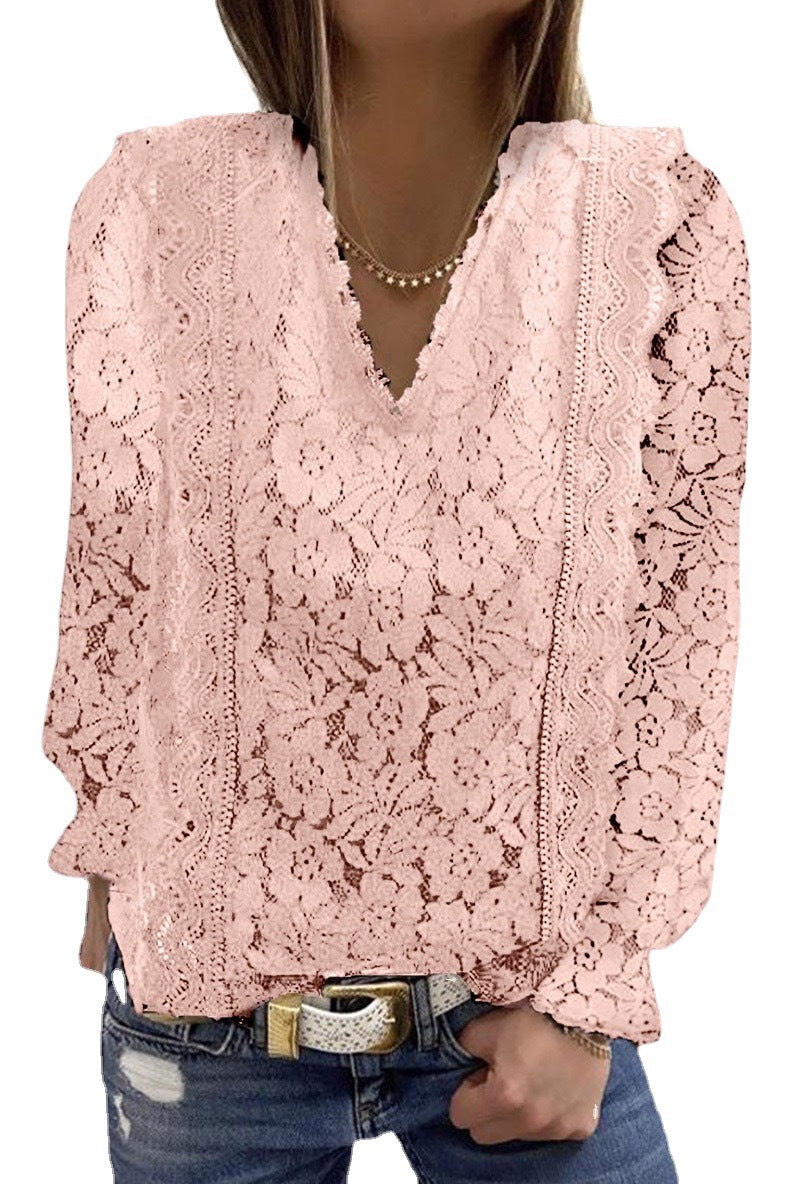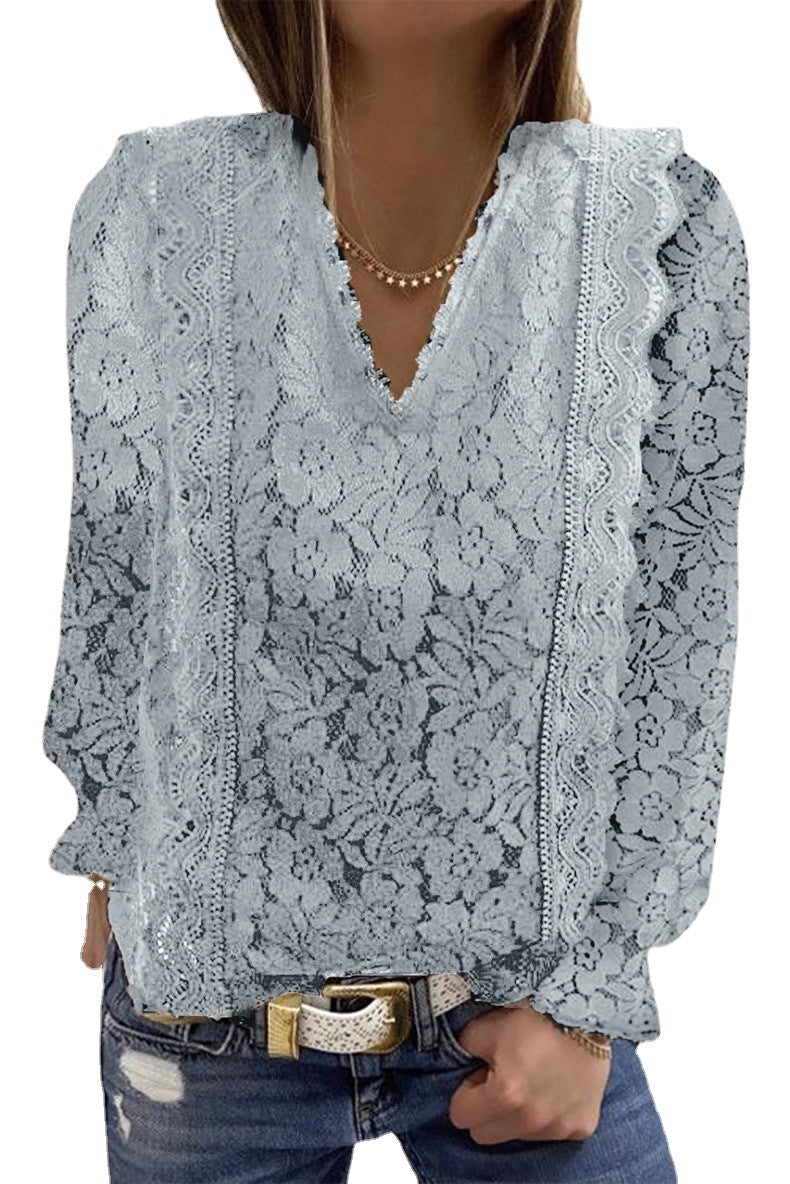 Chic et à la mode, cette bobse à manches longues en V floral en dentelle en dentelle en dentelle en dentelle florale complétera tout look printanier. Le chemisier est façonné hors des morsèmes soft et se présente en plusieurs options de couleurs différentes.