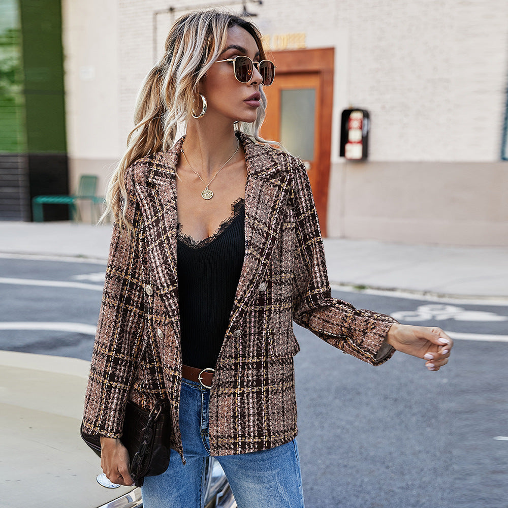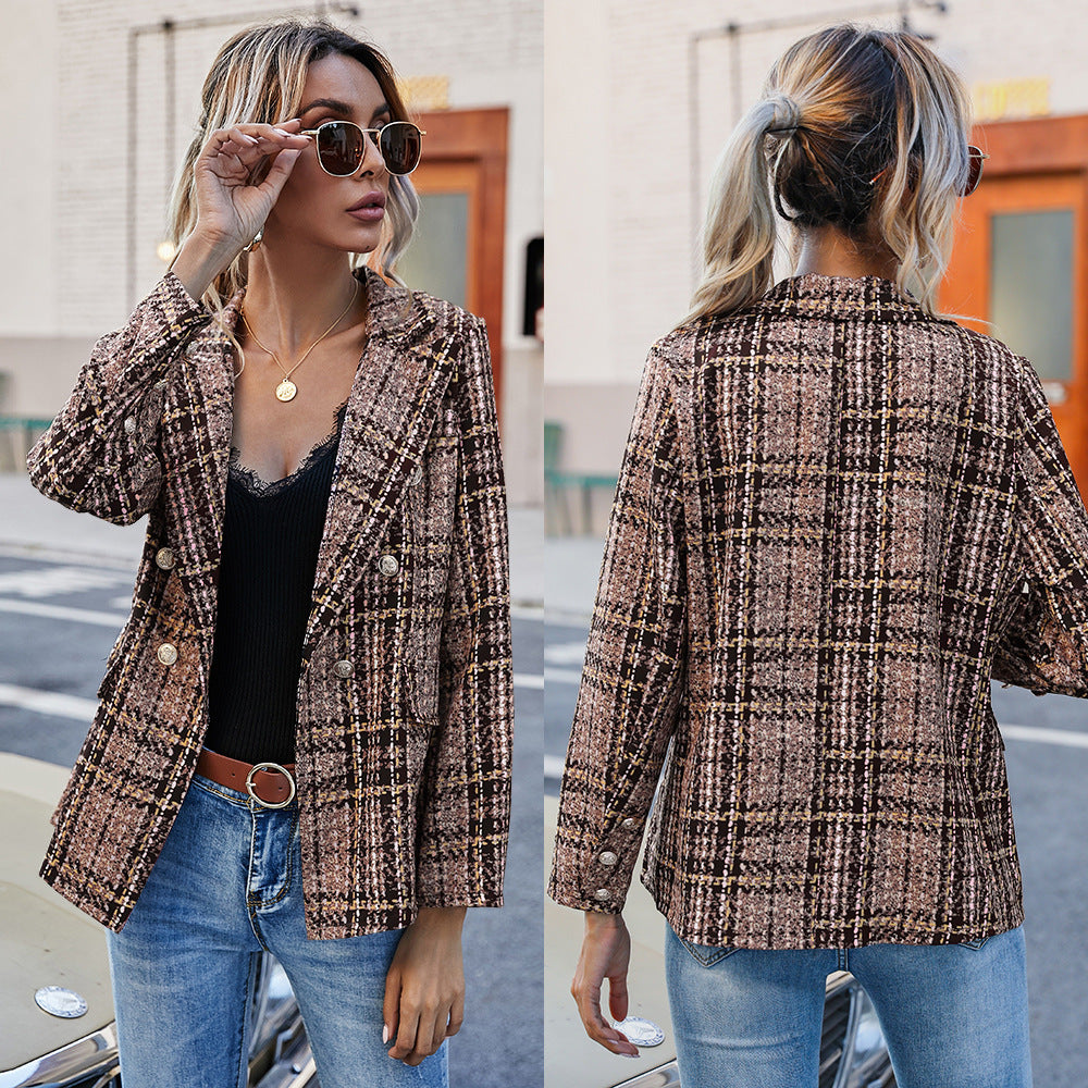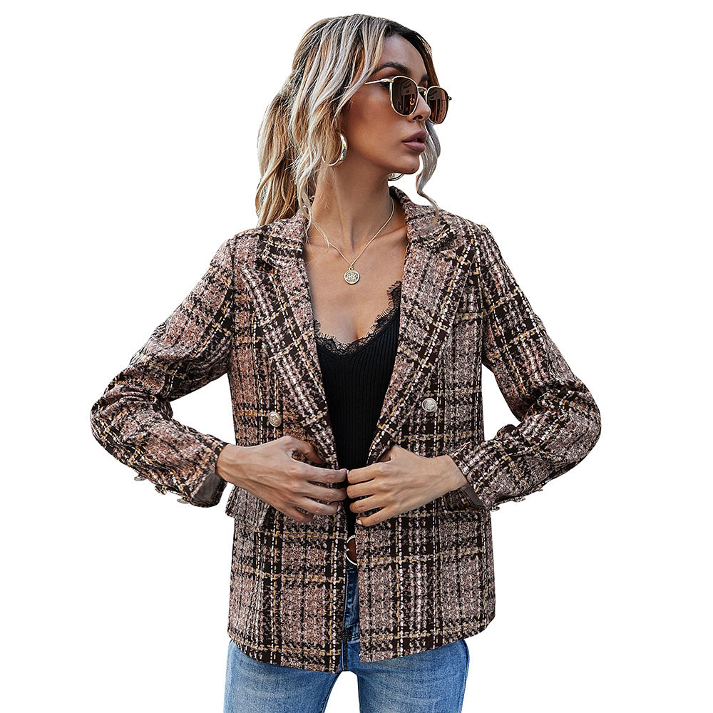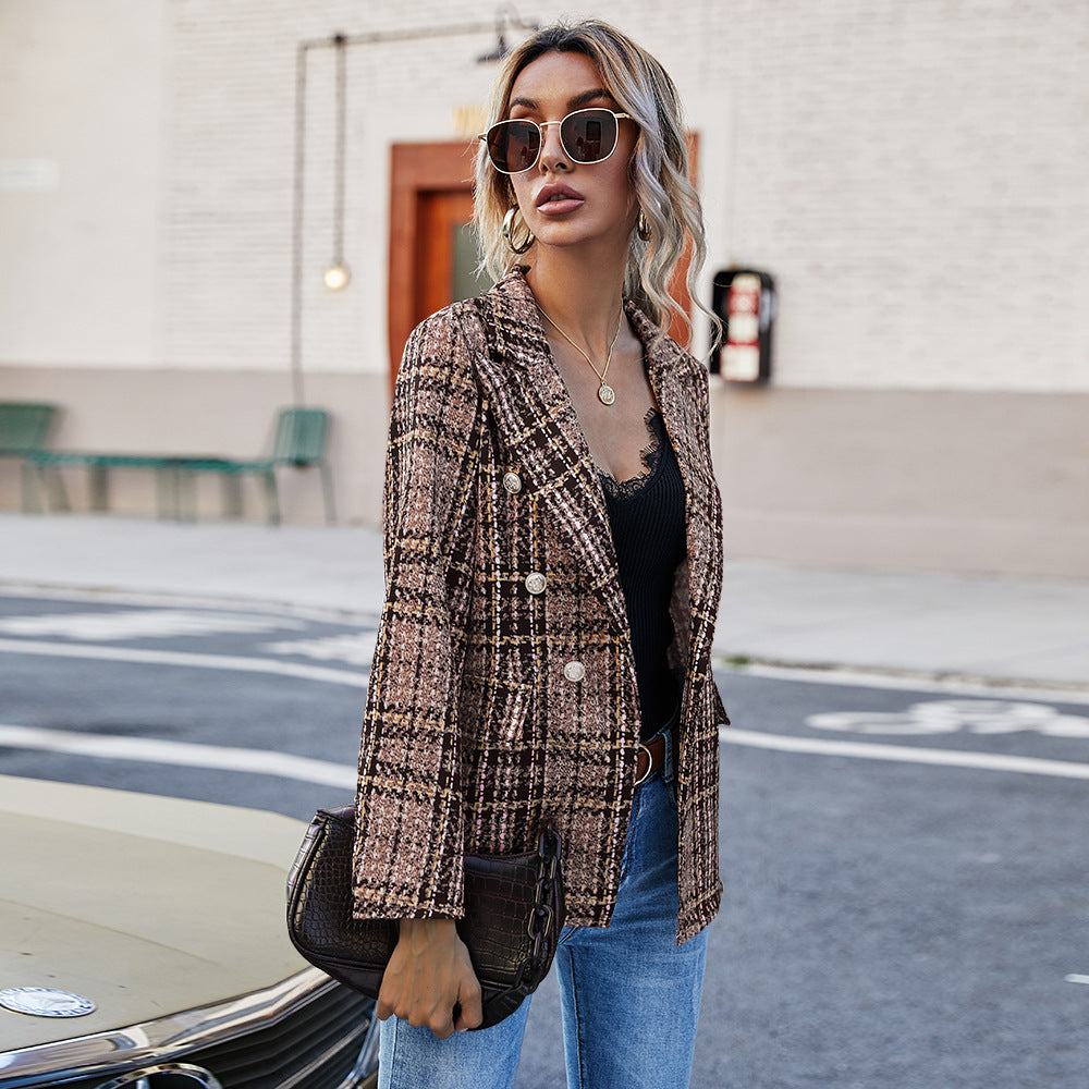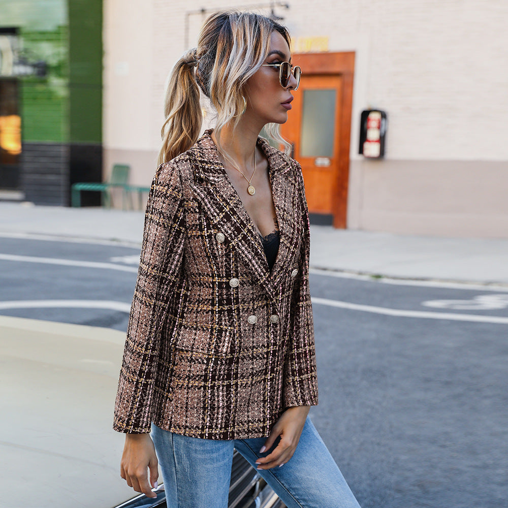 Women's Tweed Inspired Long Sleeve Double Breasted Jacket