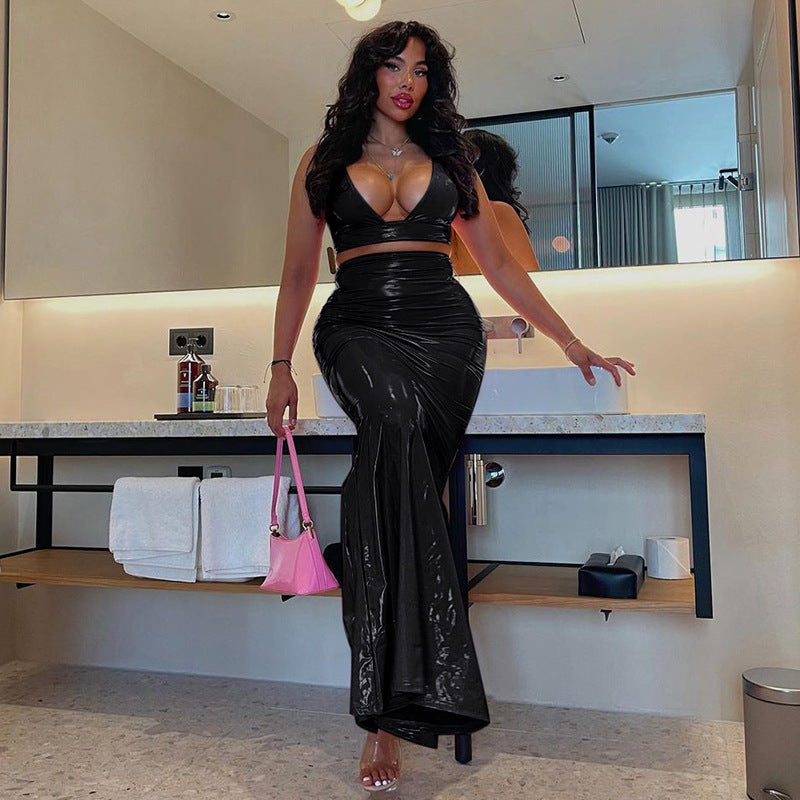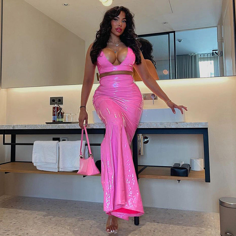किसी भी पार्टी में महिलाओं के बॉडी कॉन रबर की तरह वी-नेक मैक्सी ड्रेस पहने हुए शो को कम स्कूपिंग नेकलाइन और पीठ तक एक स्लिट पहने हुए।