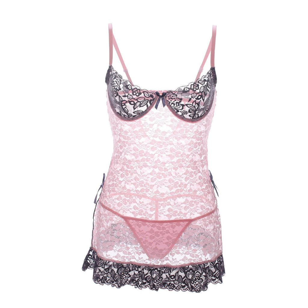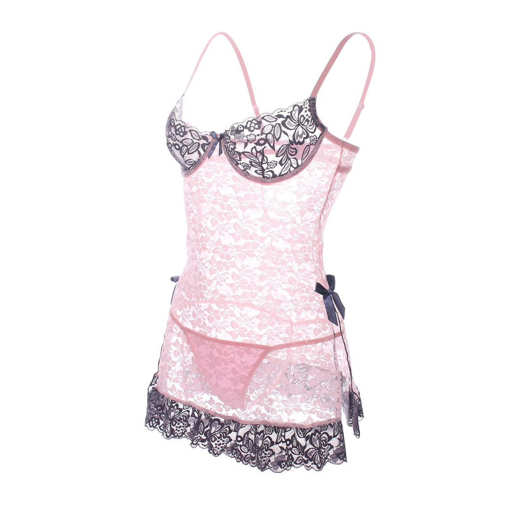 जब आप फीता कप स्कर्टेड बेबीडोल अधोवस्त्र सेट पर फिसलते हैं, तो गुलाबी रंग में सुंदर महसूस करते हैं, जिसमें काले कप, हेम के चारों ओर काला फीता और बीच में हर जगह गुलाबी फीता की विशेषता होती है।