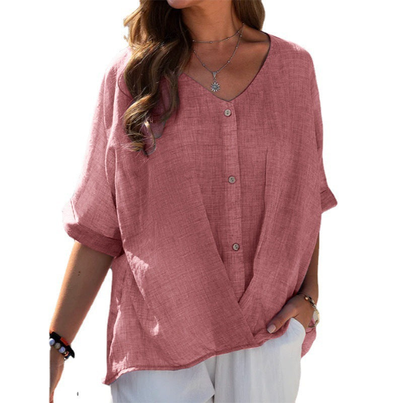 फिटिंग थ्री क्वार्टर स्लीव्ड बटन टॉप