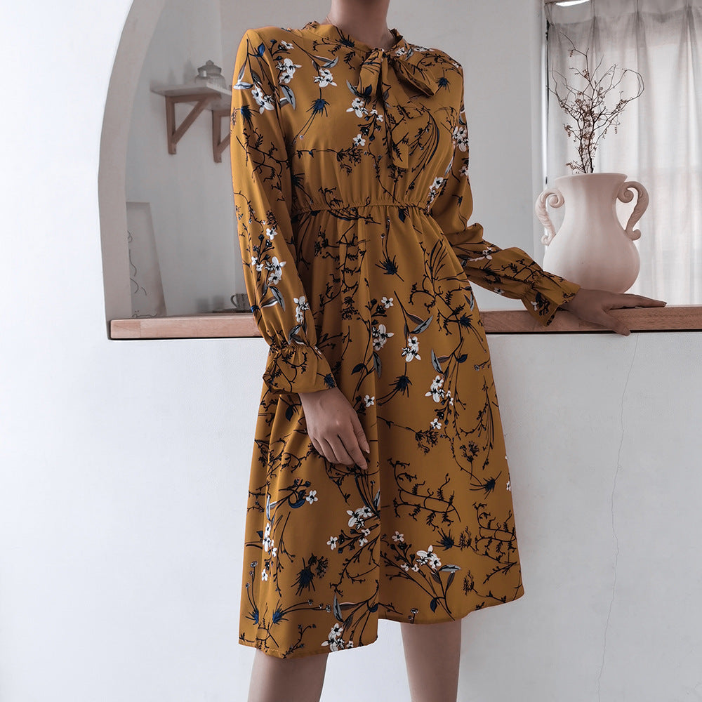 अपनी पसंद के एक विशद पैटर्न की विशेषता वाली लंबी आस्तीन के साथ महिलाओं के मॉक नेक मिडी ड्रेस के साथ एक आंख को पकड़ने वाला बयान दें। यह विभिन्न रंगों में आता है और साथ ही किसी भी स्वाद के अनुरूप होता है।