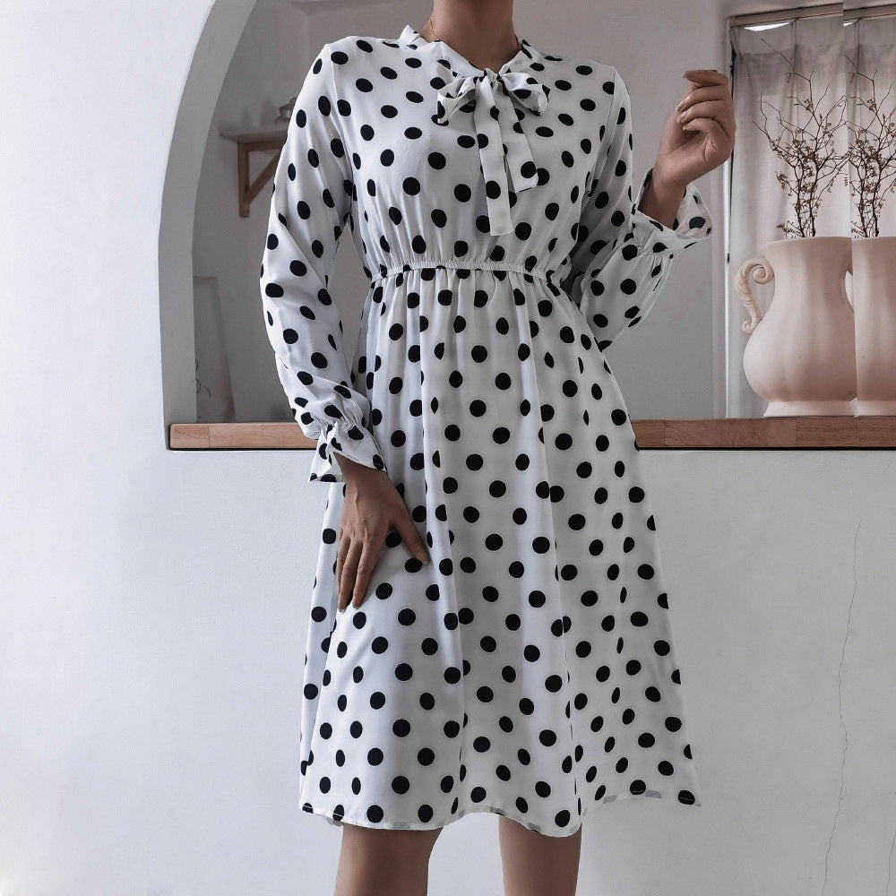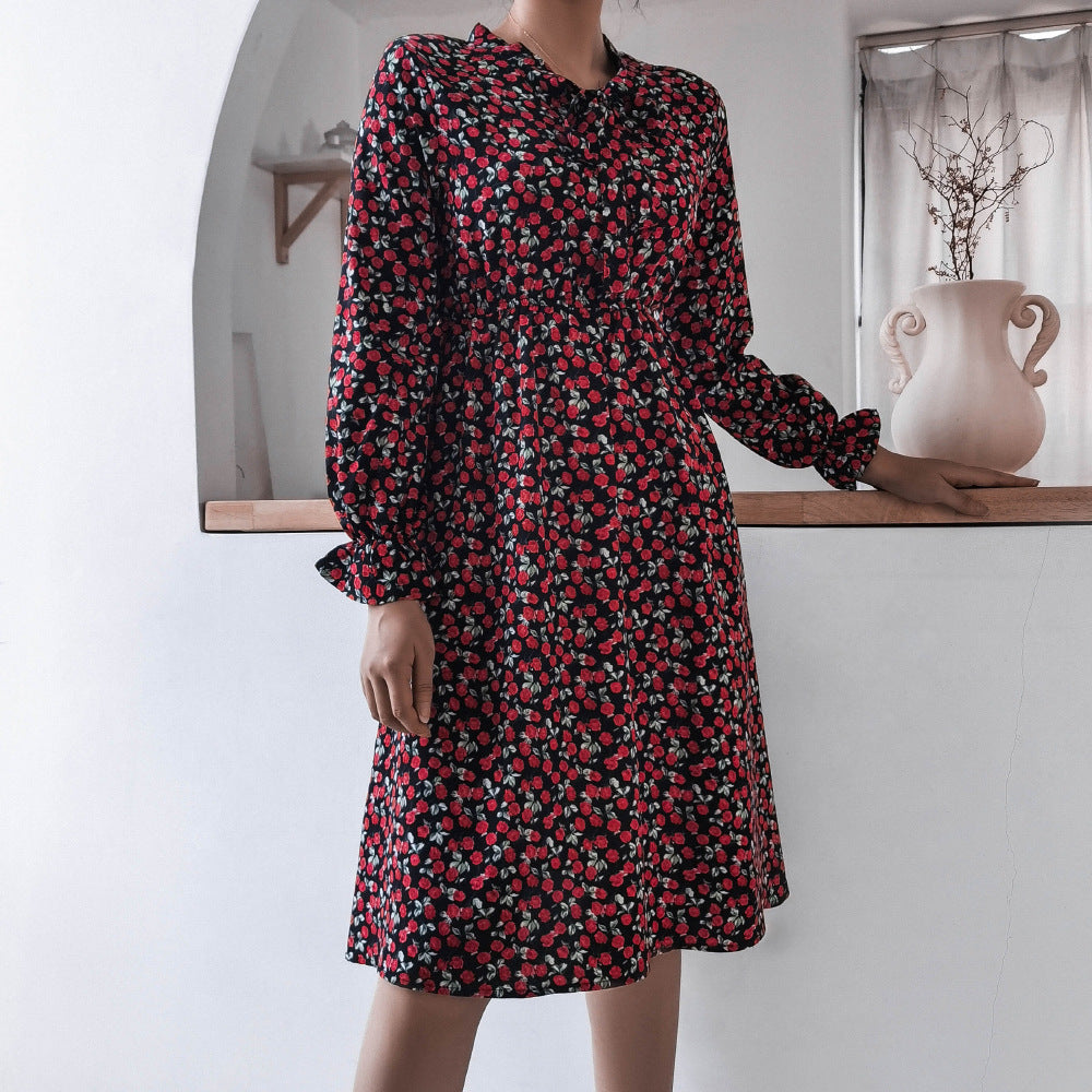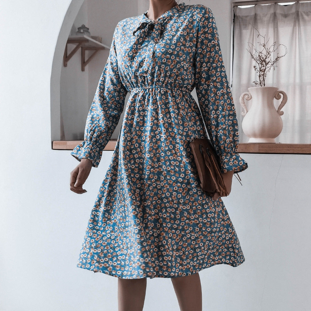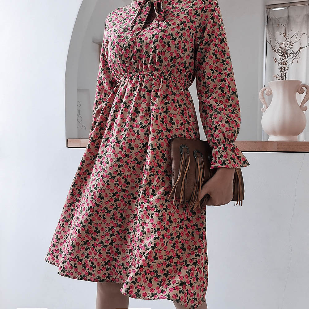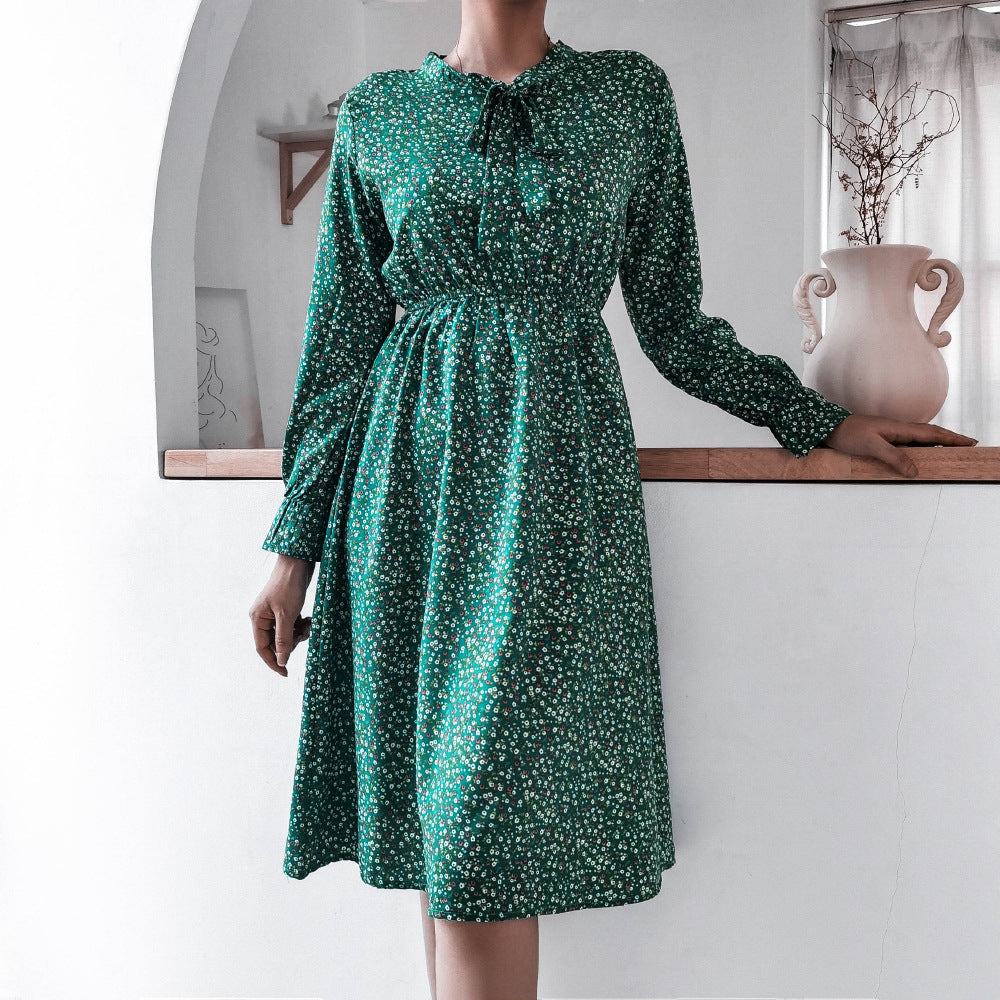 लंबी आस्तीन के साथ महिलाओं की मॉक नेक मिडी पोशाक