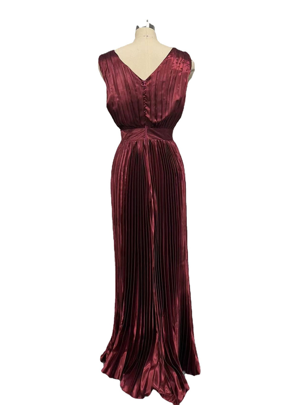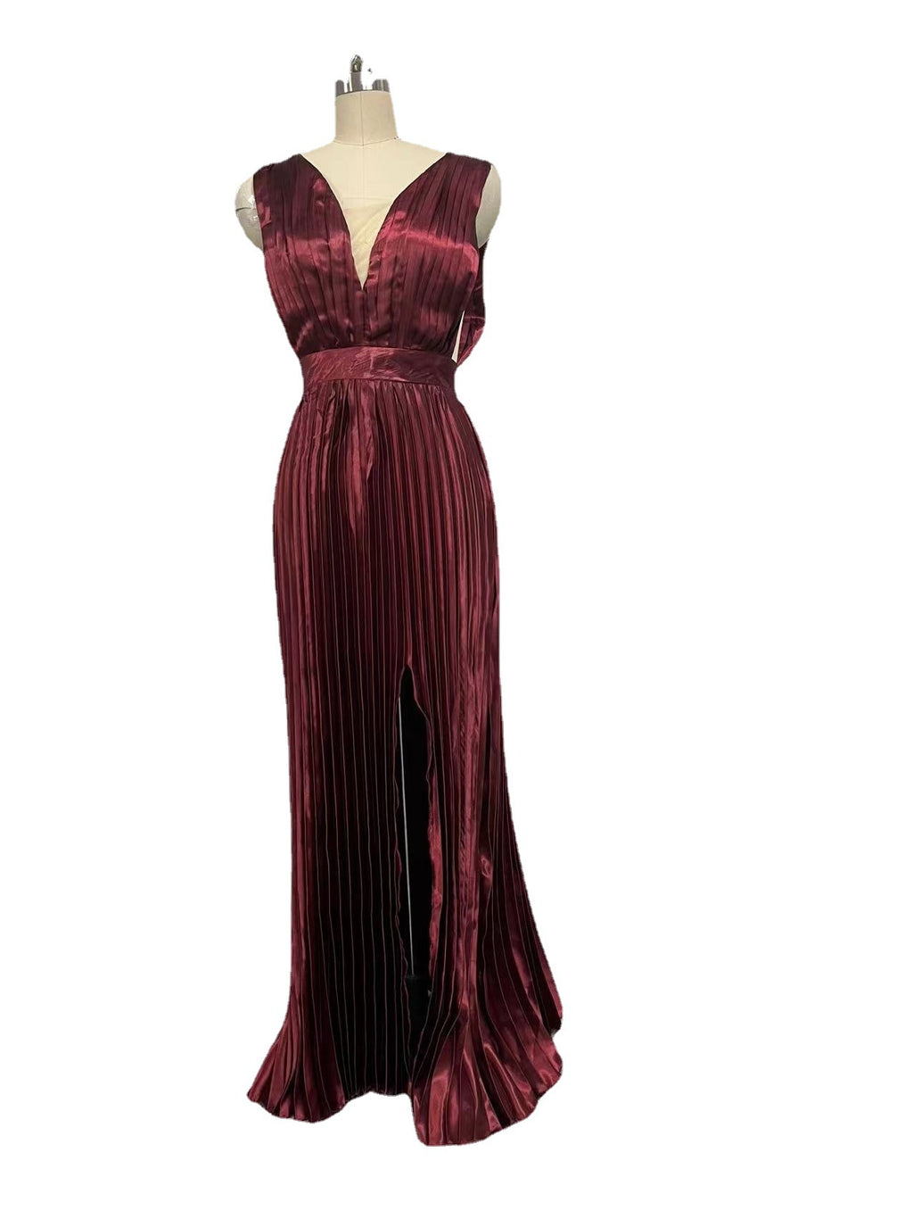 Langkah ke dalam ruangan dengan gaya mengenakan gaun maxi tanpa lengan wanita ini dengan pinggang tertutup yang menampilkan bahan silky dan satiny yang mengalir ke lantai. Warnanya yang kaya menambah kemilau yang menarik.