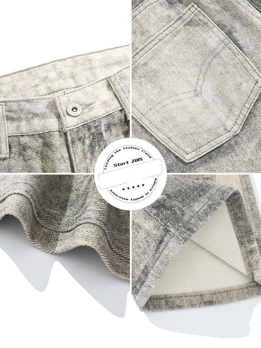 Jeans pelindung-hem ini menampilkan perawatan dasi-pewarna yang aus dengan aksen lubang halus untuk estetika gerombolan. Kecocokan mereka yang santai memastikan kenyamanan, sementara tekstur mentah menambah daya tarik jalanan. Lempar hoodie tanaman dan sepatu bot untuk sejuk instan.
