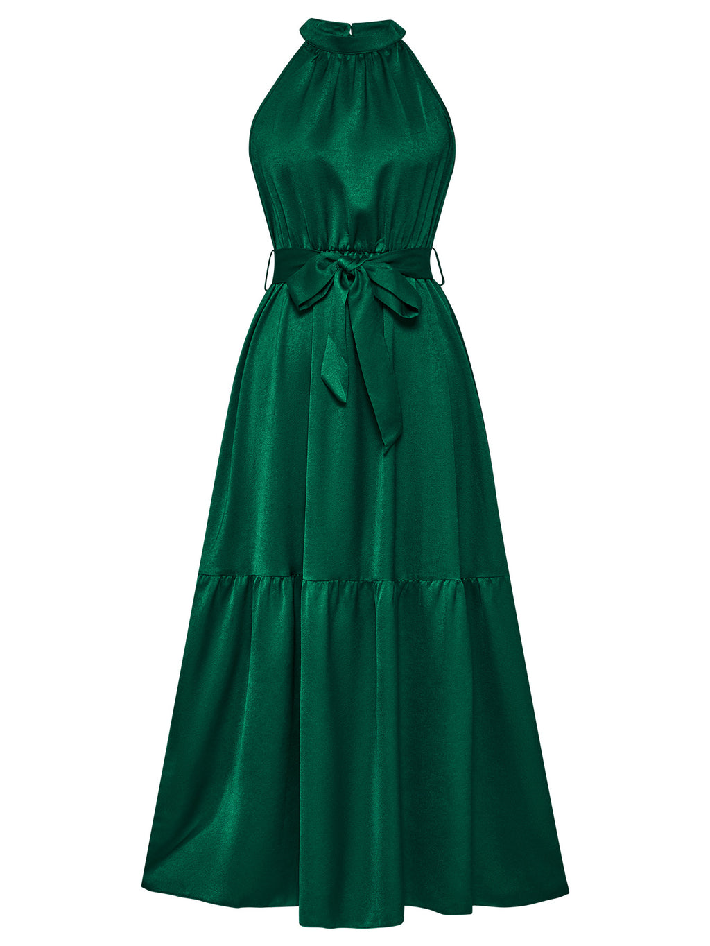 Abito maxi a cacciatore senza maniche da donna con vita a fiocchi