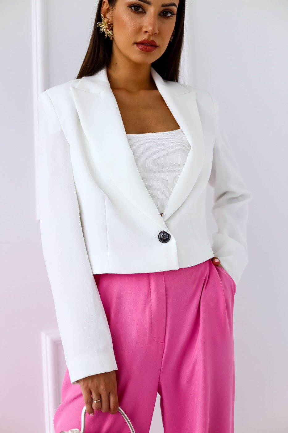 Aggiungi un fierce Flair ai tuoi gruppi nella giacca a doppio petto blazer a blazer da donna con bottoni di accento. Questo blazer accattivante presenta linee e angoli acuti per un look contemporaneo. È disponibile in quattro colori.