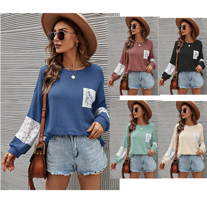 Lacy Patchwork in stile maglia a maglietta da donna a maniche lunghe