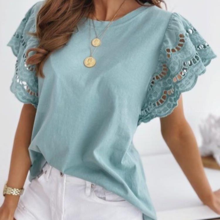 La maglietta a collo d'o-collo di Lacy a maniche corte fa un nuovo giro sulle tue solite magliette. È super morbido al tatto ed è disponibile in diversi colori chiari per adattarsi ai tuoi gusti.