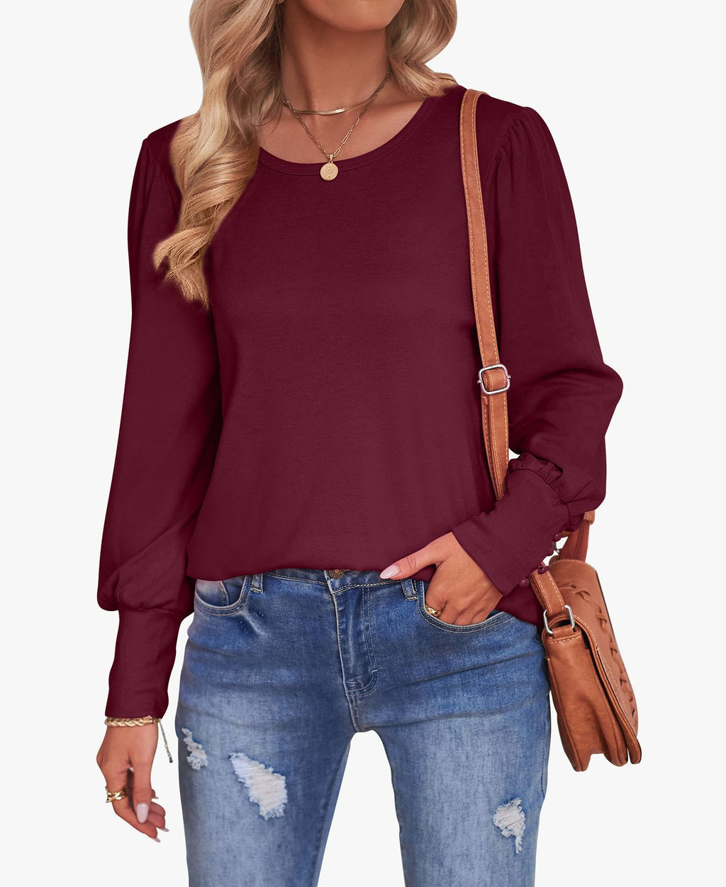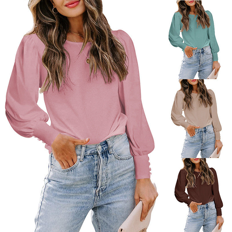 女性の長袖のゆるいぴったりのブラウスで、カジュアルな昼間の服装をo-neckと一緒にドレスアップしてください。このシンプルなブラウスには、集まった袖と締め付けられた手首が特徴で、ユニークなシルエットを提供します。