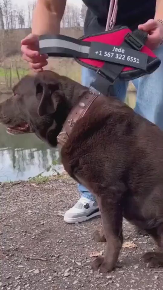 Train and walk your dog with this no-pull reflective harness. Adjustable and breathable, it ensures comfort and control for dogs of all sizes. Add a custom patch for personalization, making it both practical and stylish.