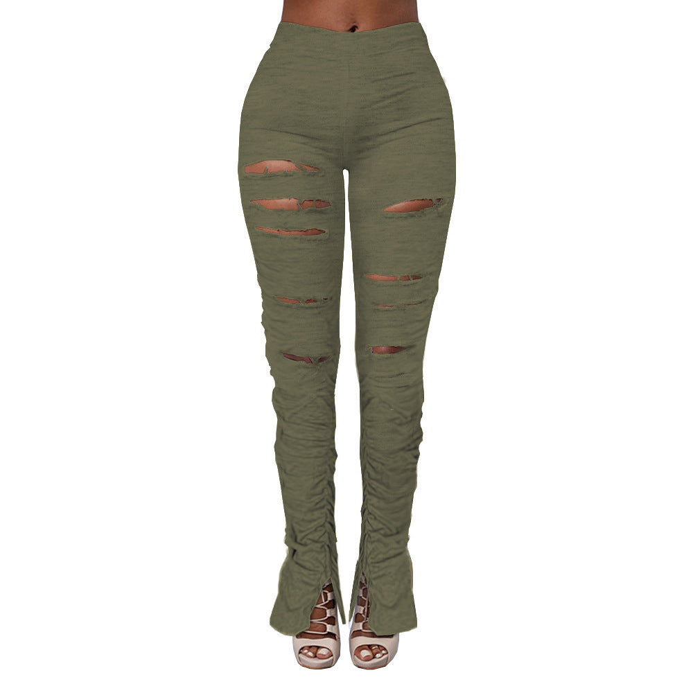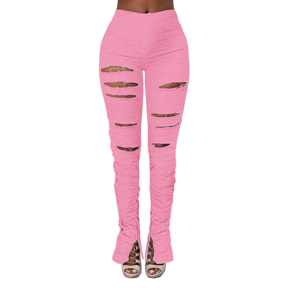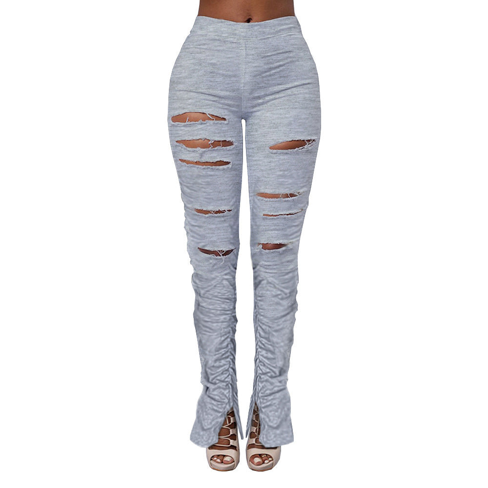 リッピングされたジーンズのレトロなル​​ックスを、女性のハイウエストで破れた生地を集めたパンツでキャプチャします。これらのテクスチャーパンツにはいくつかの色のオプションがあり、お世辞のハイウエストが特徴です。