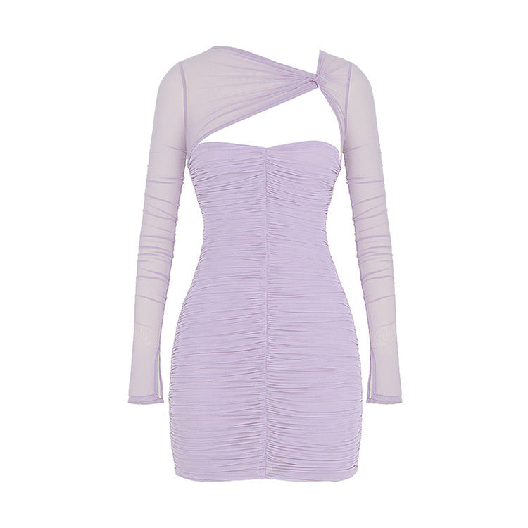 メッシュボディスとスリーブを備えた女性のボディコンミニドレスであなたの軽薄な性格を見せてください。ユニークなドレスは、上半分を構成する半戸建てのメッシュ材料を備えています。