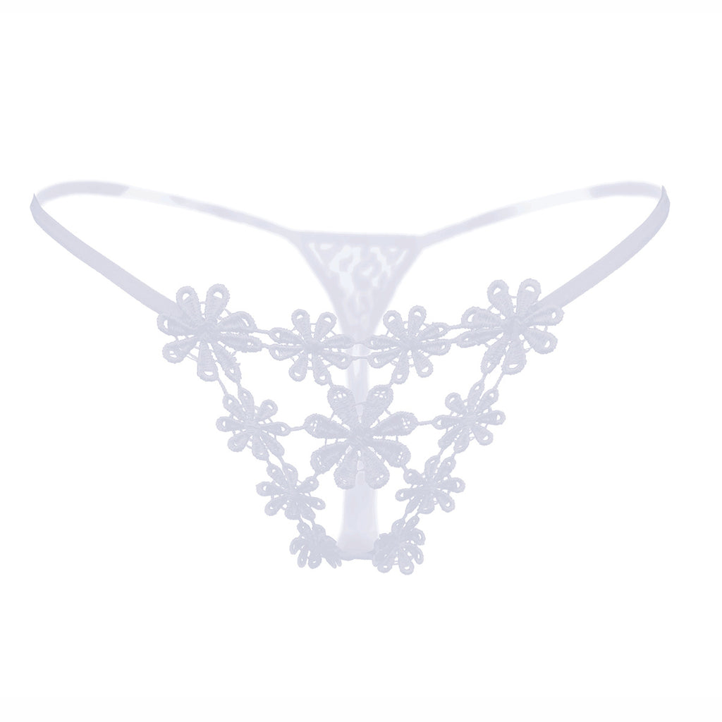 Versier je lichaam in prachtige bloemen met het bloemen borduurwerk micro string panty met zwarte bloemen langs de voorkant en achter in de string.