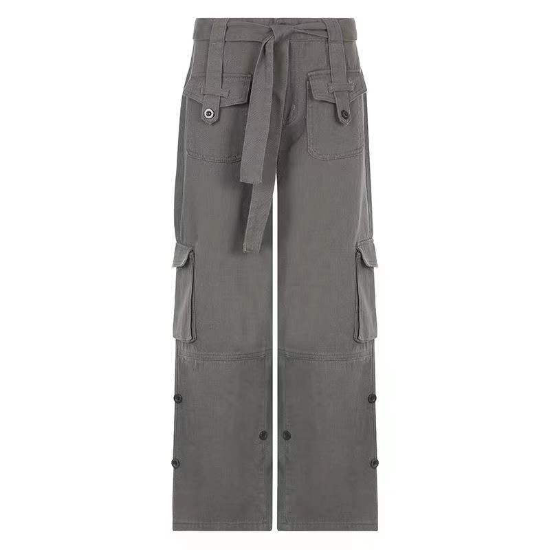 Pronk met je vorm met de silhouetdefining dames met hoge taille losse fitting broek met stropdas taille. Ze komen in een neutrale grijze tint die je met veel tops kunt dragen.
