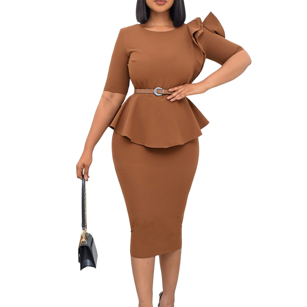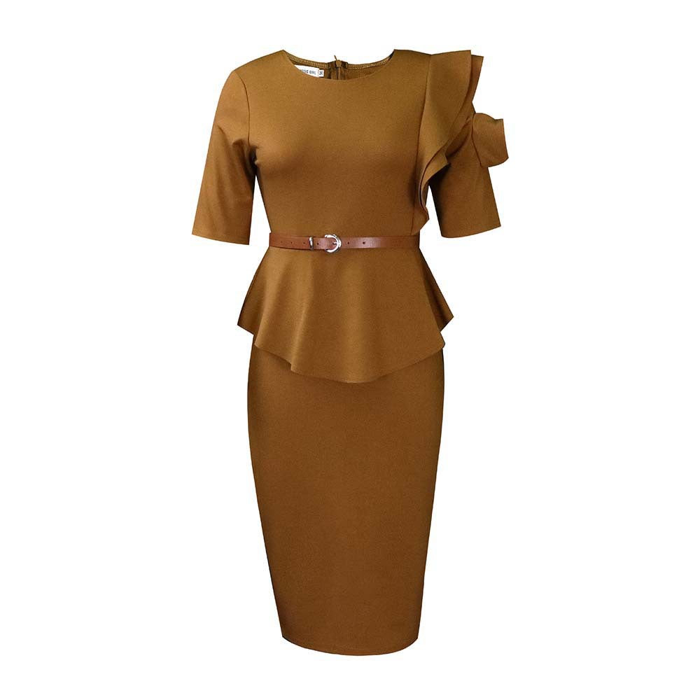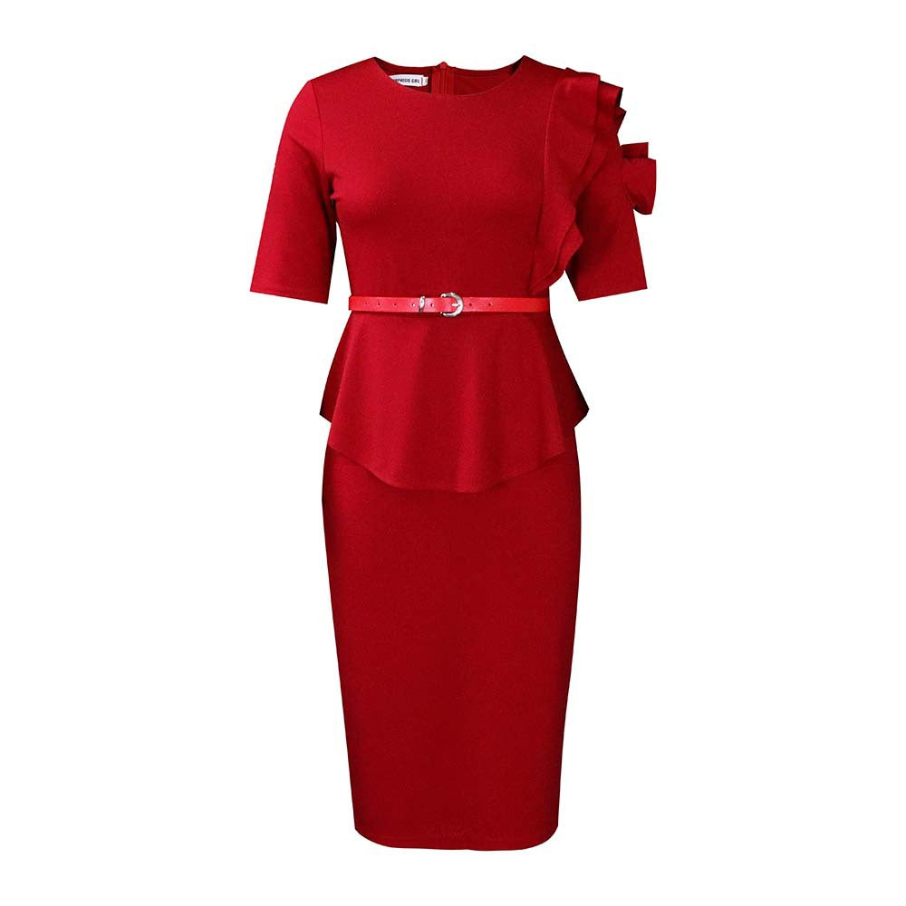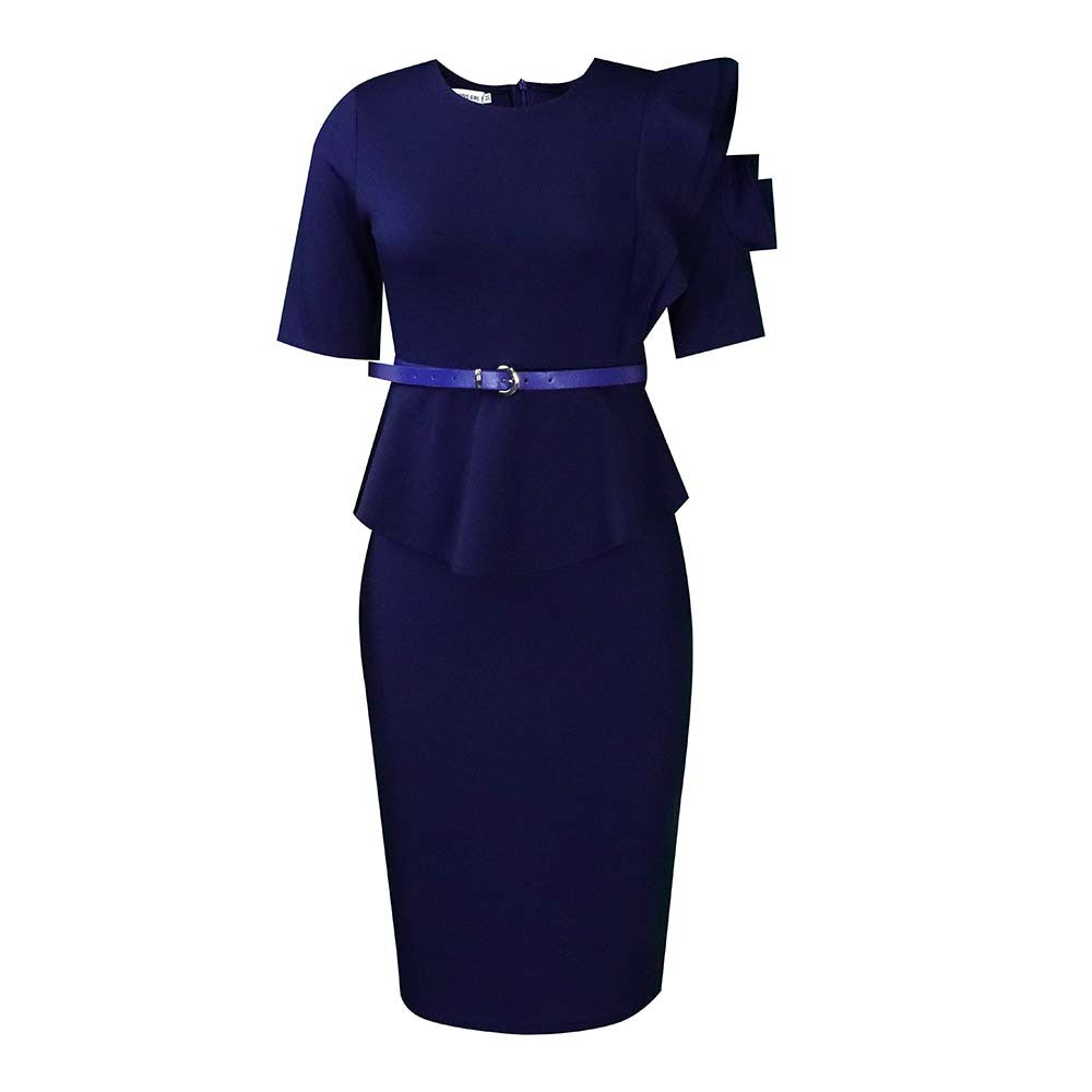 Voel je zelfverzekerd in wat je doet als je de peplum top en kokerrok van de dames draagt ​​met franje mouw met een ontwerp op één mouw en een dunne riem om de taille om je rondingen te accentueren.