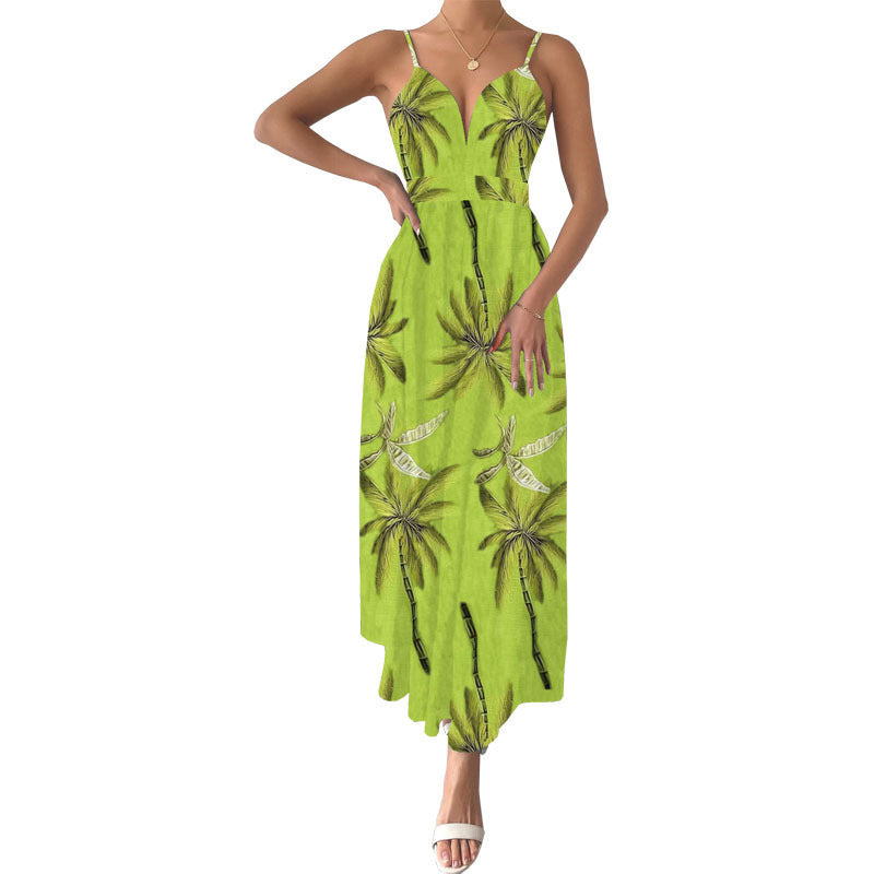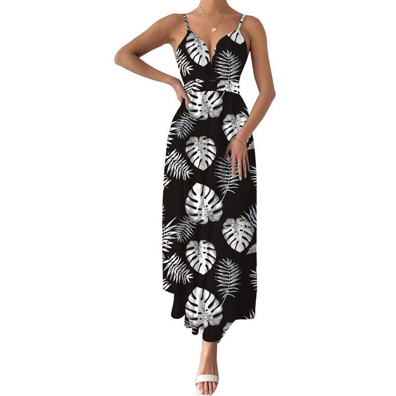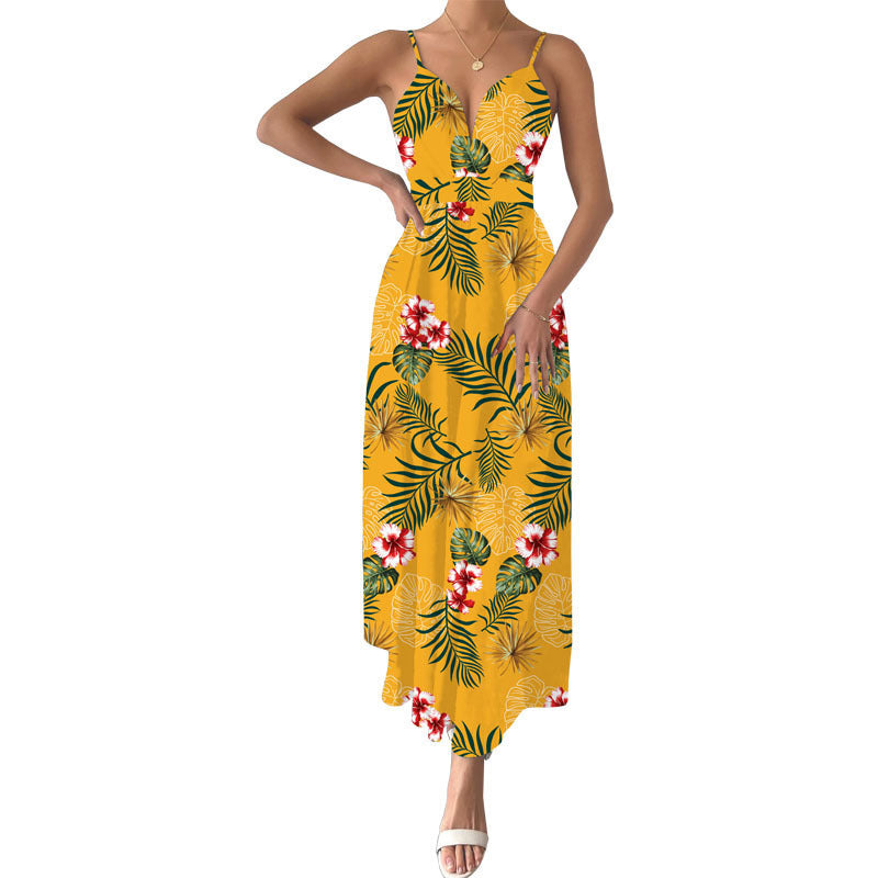 Tropische botanische geïnspireerde maxi -jurk met sweetheart halslijn
