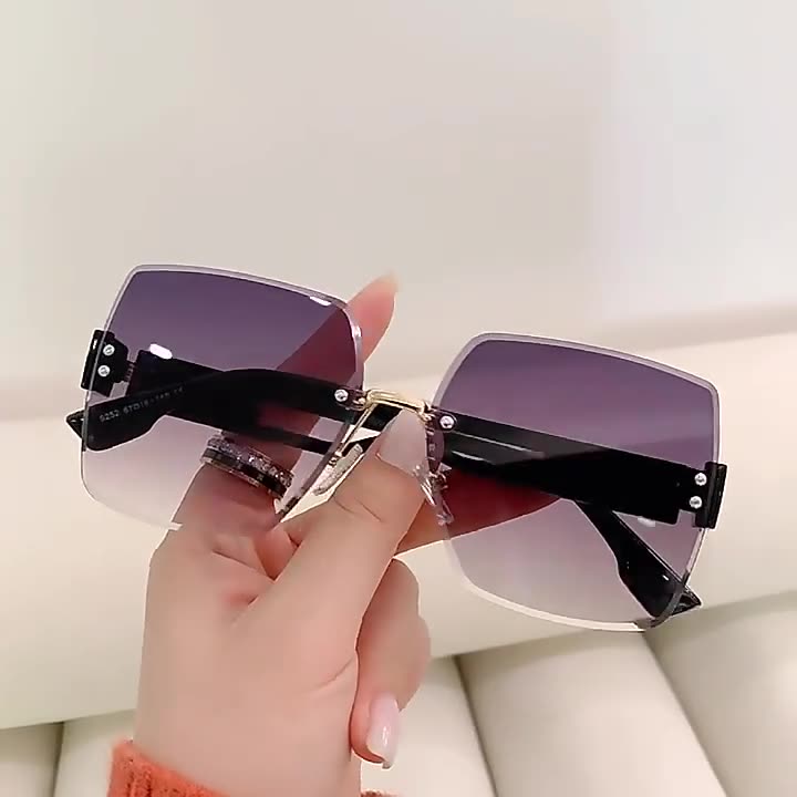 Verblinden en glanzen, waar je ook heen gaat als je deze vierkante vorm oversized frameloze informele zonnebrillen draagt. De tinten hebben ombre -lenzen in uw kleurenkeuze en een transparante velg om het af te maken.