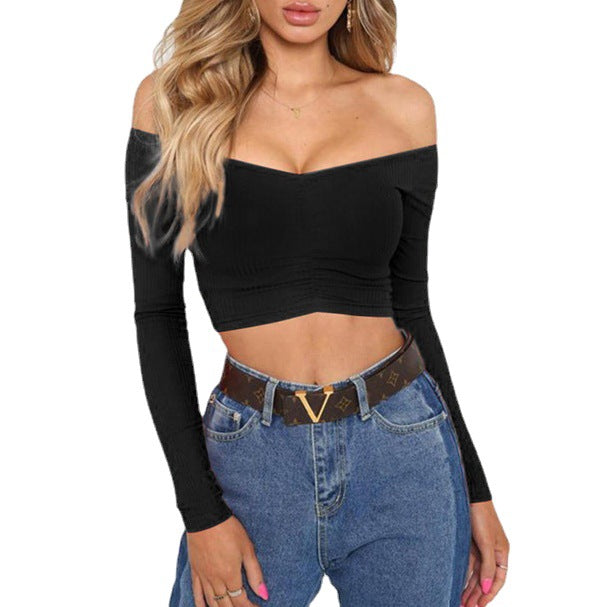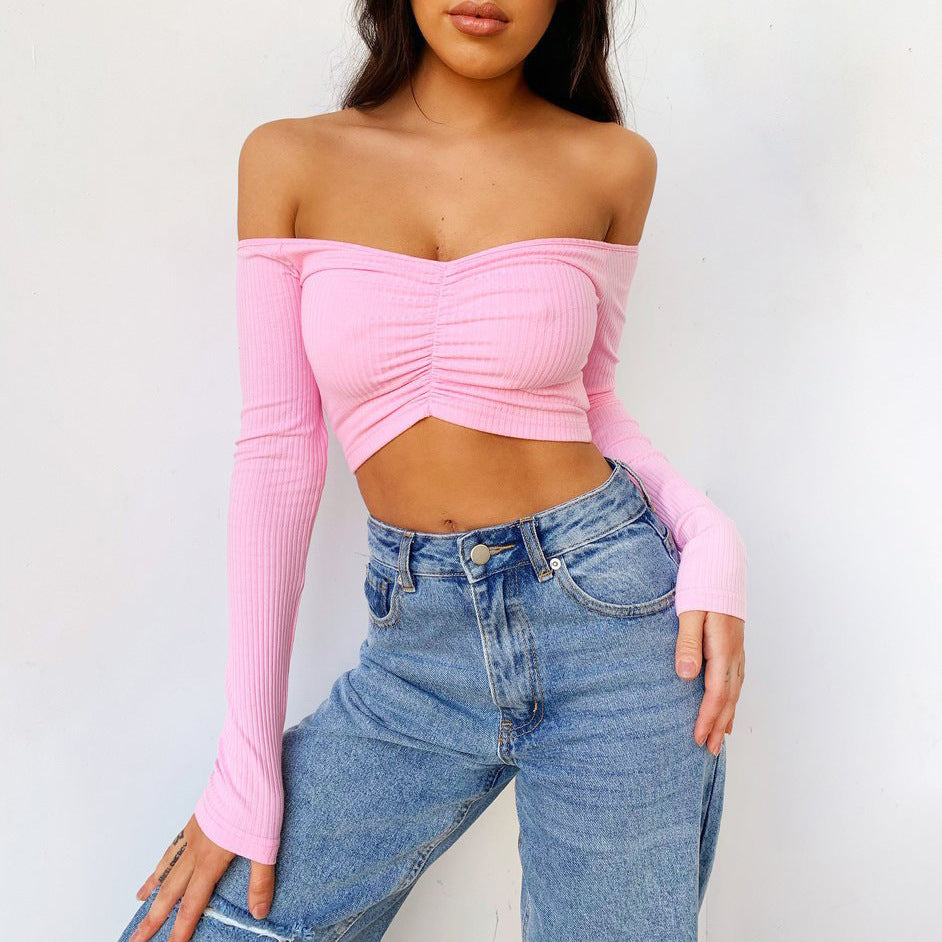 Laat jezelf opvallen in een menigte die de crop -top met lange mouwen met V -halslijn met V -halslijn draagt. Het beschikt over laag, van de schoudermouwen en een gebreide look.