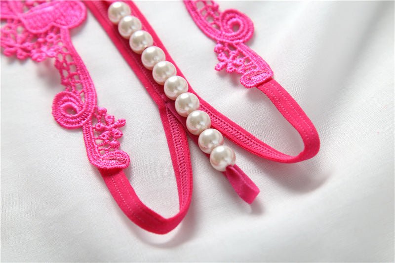 Feel cute and feminine in these Butterfly Style High Waisted Pearl Detail thongs featuring a lacy floral front and a string of pearls that runs down the center cutout.