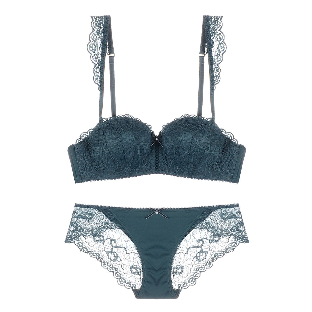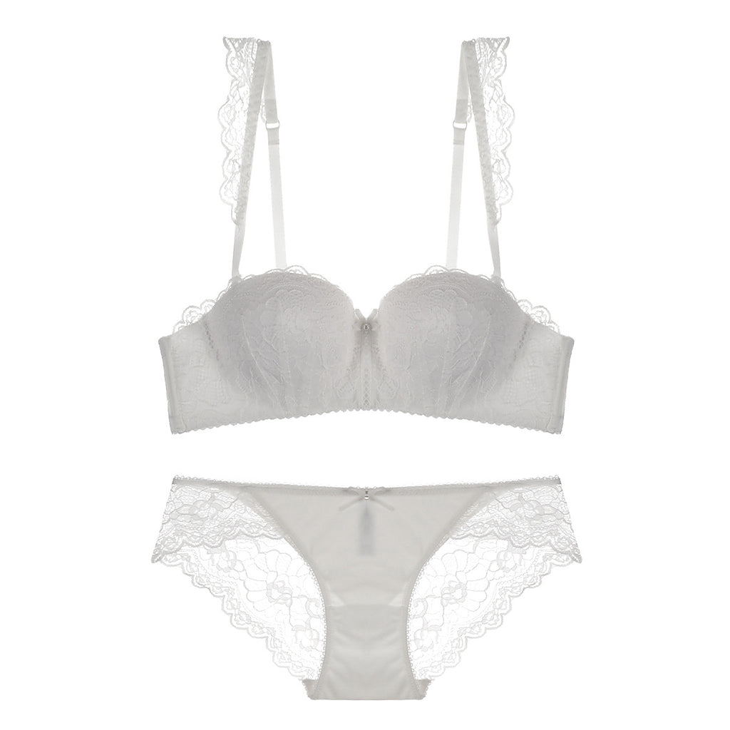 Give your bust a little lift and accent the shape of your thighs with the bra and panty respectively in this Lace Strap Balconette Bra and Panty Set.