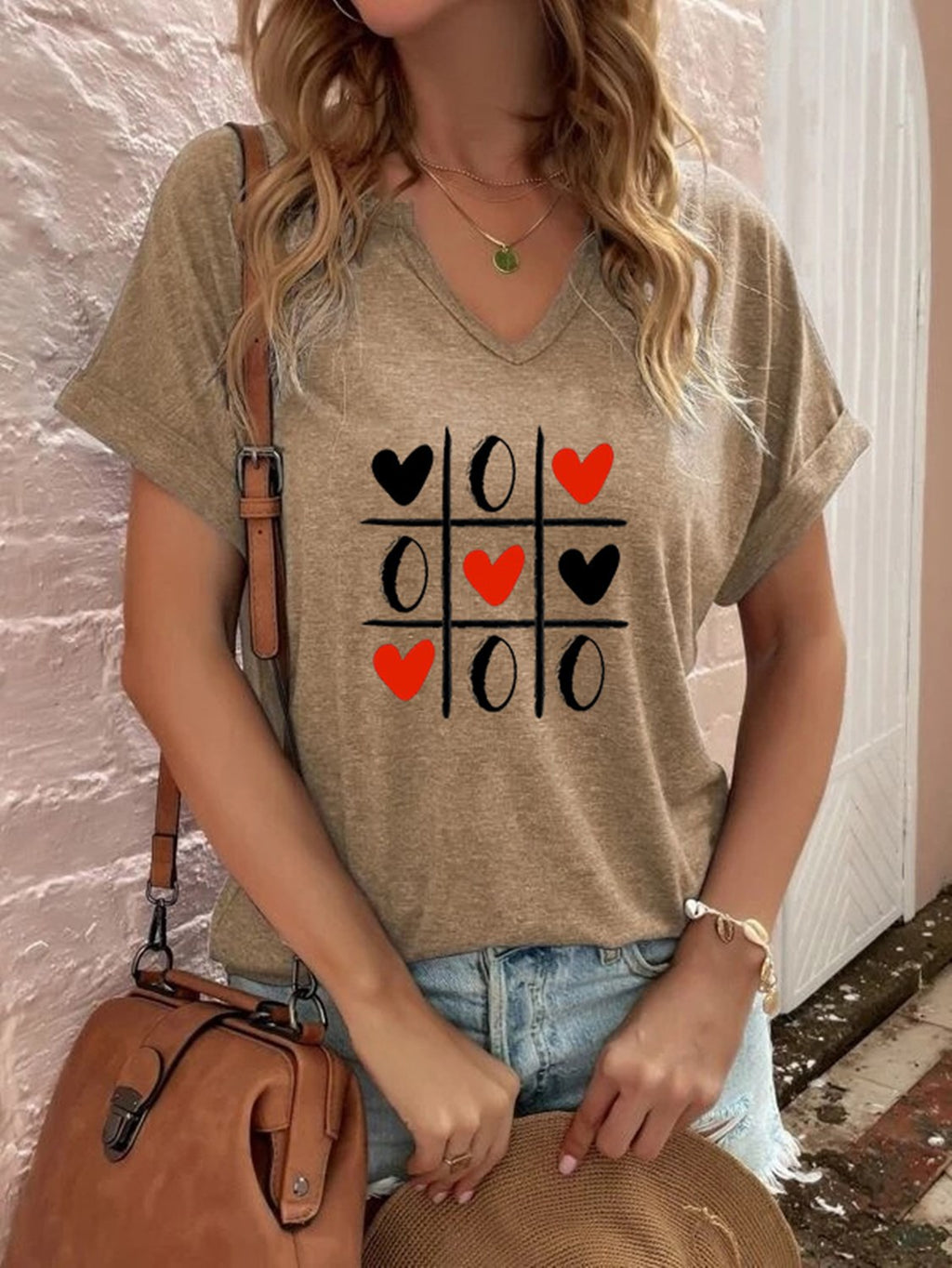 Tic Tac Toe Hearts and Os Women's Casual Tee