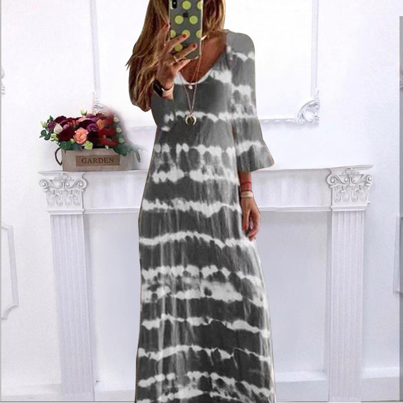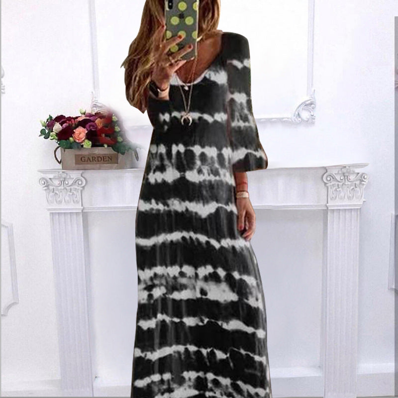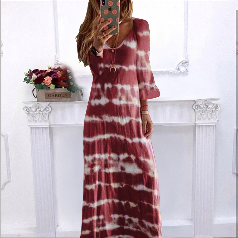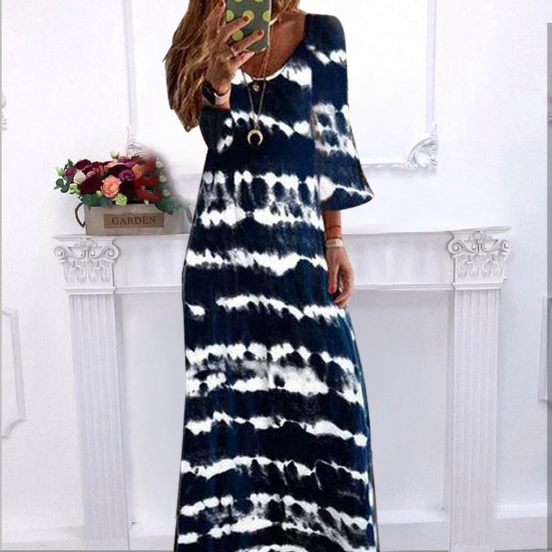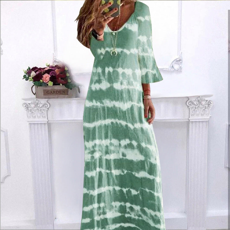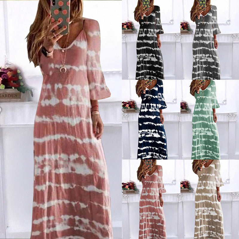 Get inspired by the patterns of the 1990s wearing the Women's Tie Dye Maxi Dress with Spaghetti Straps. This sleeveless dress is perfect for summertime and comes in various color options for you to choose from.