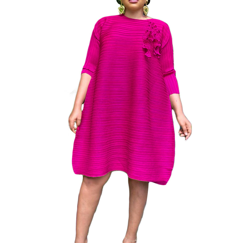 Apropriado e confortável, o vestido Midi de três quartos de comprimento feminino fica no cruzamento de conforto e estilo. Possui um design de encaixe solto e mangas de três quartos de comprimento para uma silhueta única.