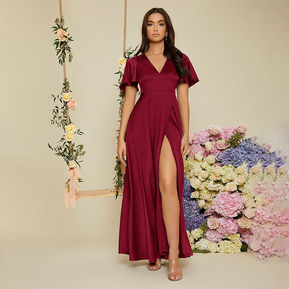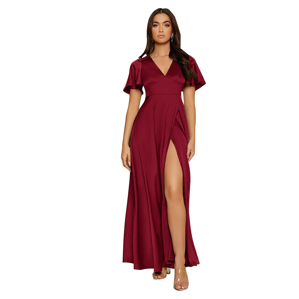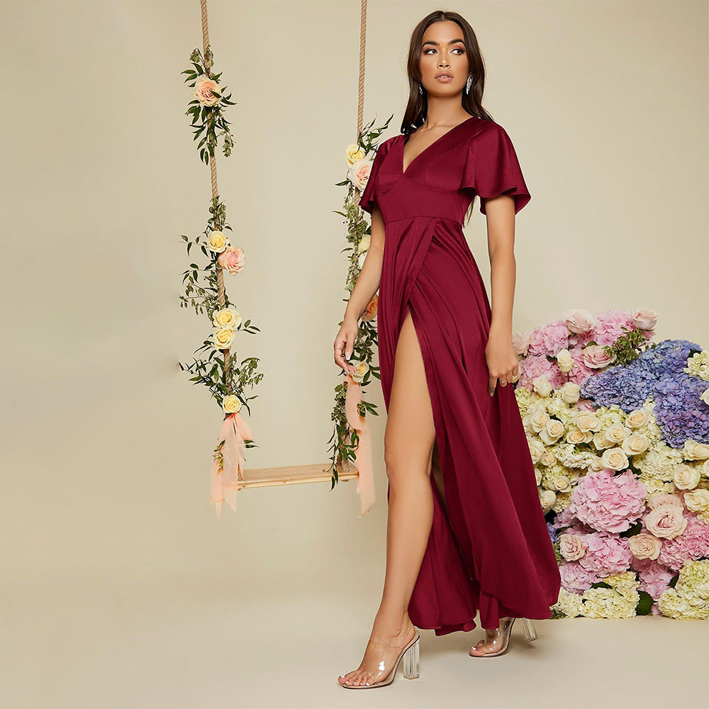 Afaste-se do seu próximo evento formal, usando o vestido maxi de cintura do decote em Voneio em V Feminino, que apresenta uma fenda atraente na coxa. O vestido tem uma aparência incrível e fluida em camadas.