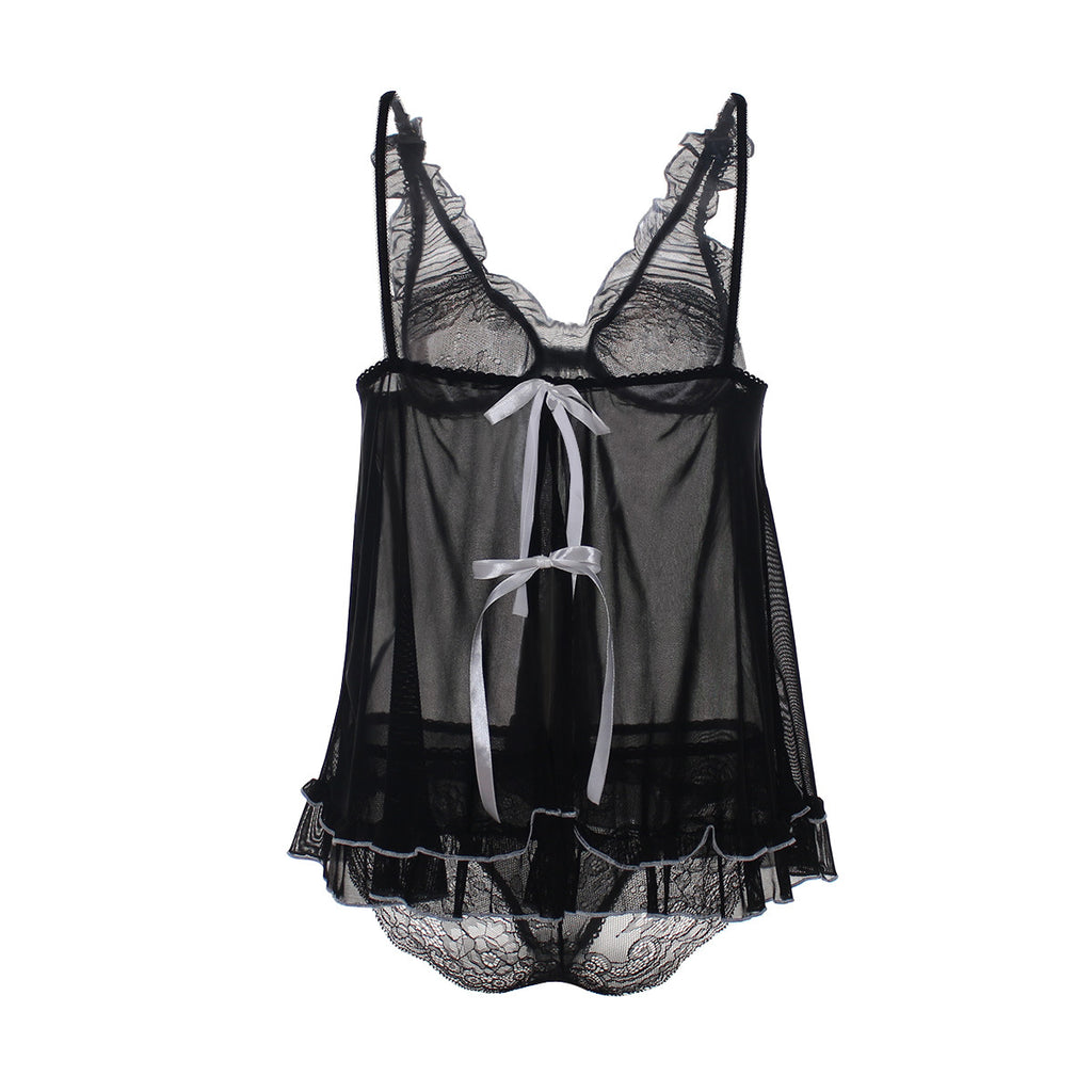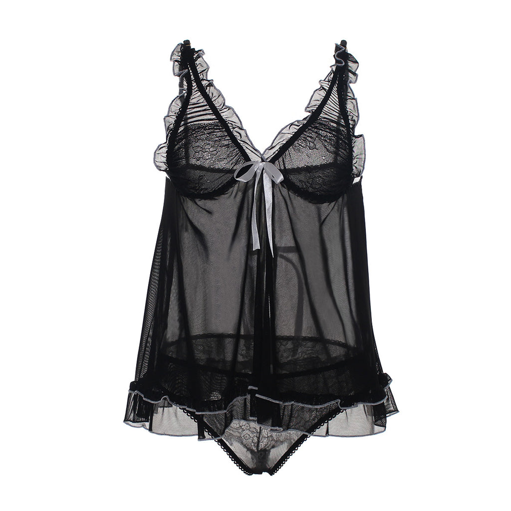 經典設計,這種毫不費力的性感荷葉邊下擺babydoll Lingerie套裝將使您的情人從他們凝視您的那一刻。