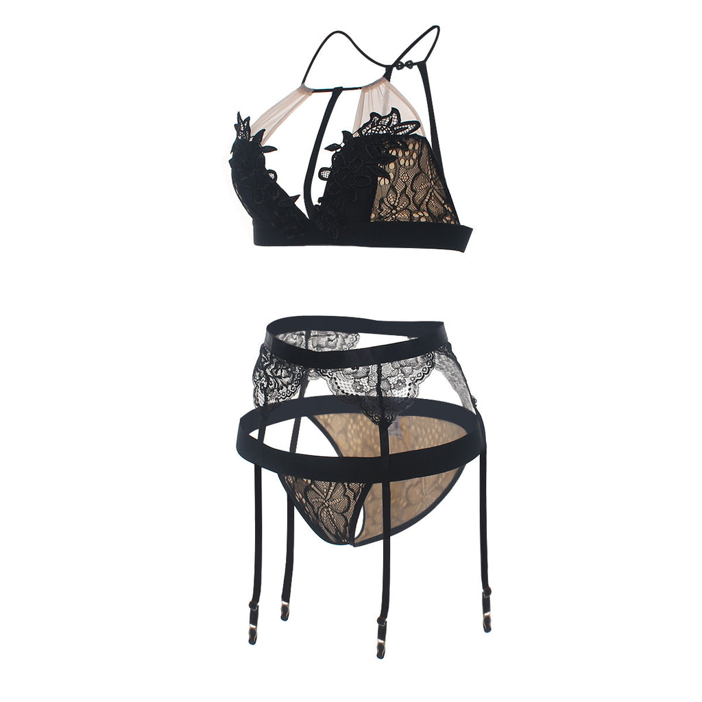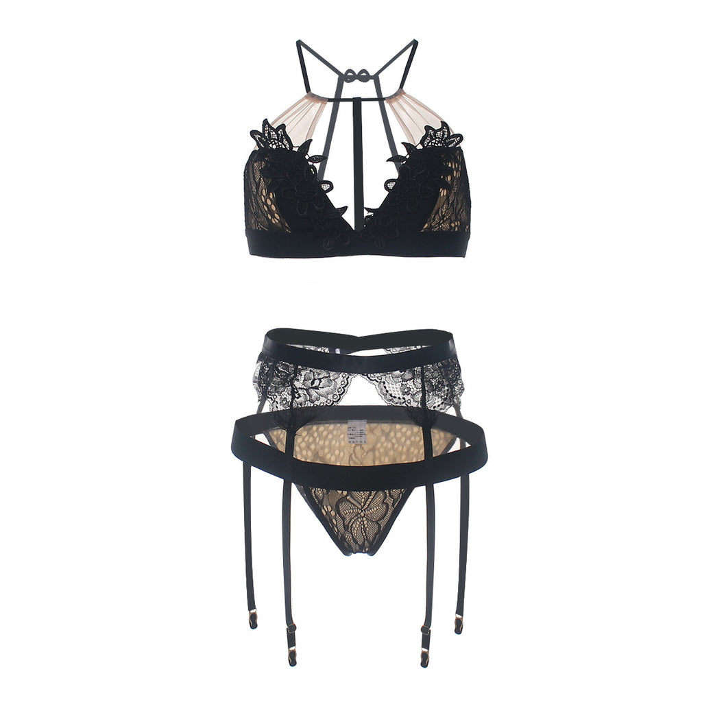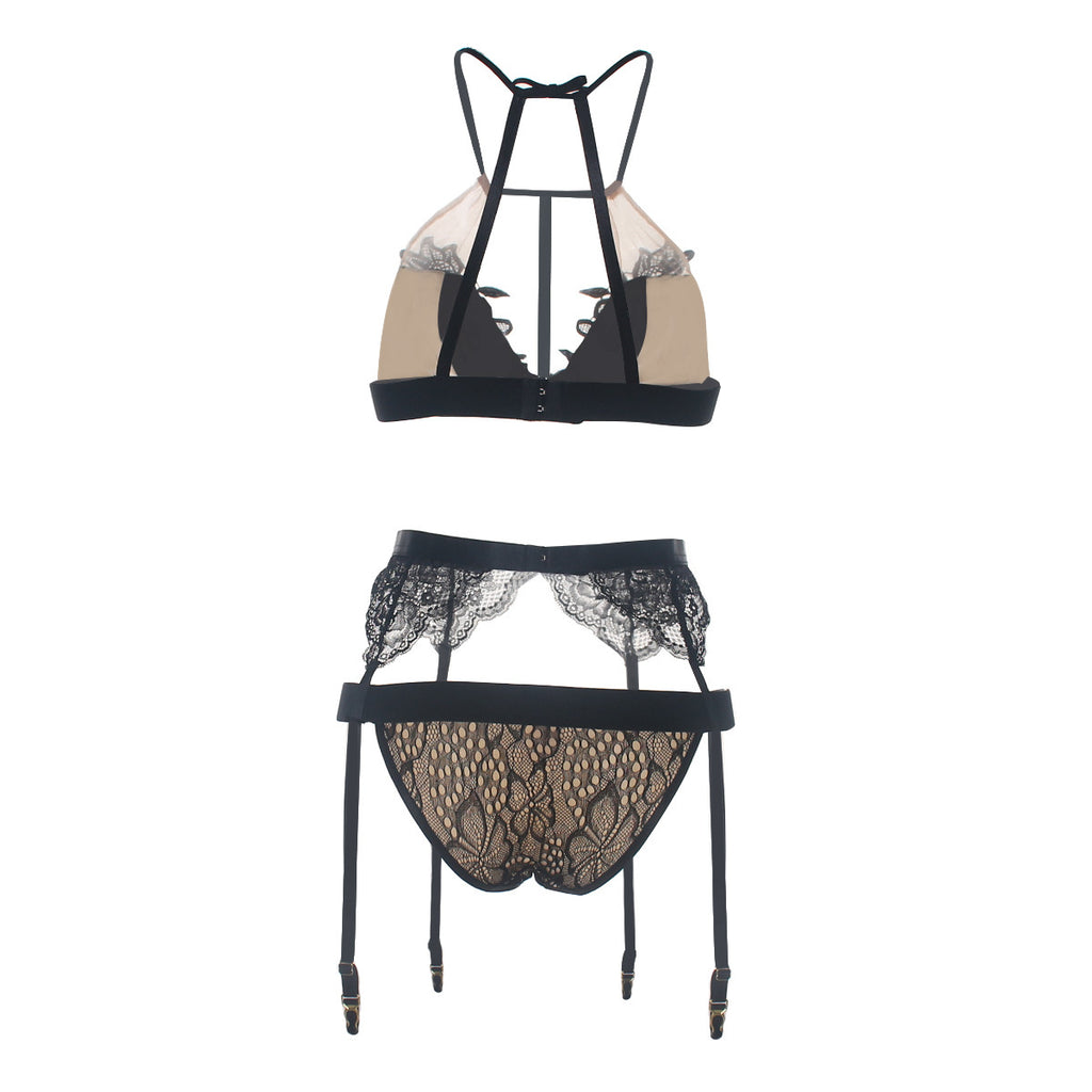 奶油織物和黑色蕾絲的經典組合創造了誘人的,具有復古風格的大膽decadence胸罩和吊吊衣套裝,肯定會使您的美女發呆。