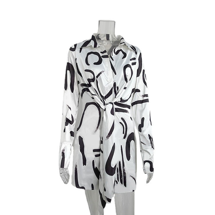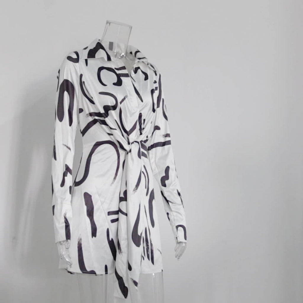 用女士的大型印刷襯衫風格迷你連衣裙表達您的創意個性。這件衣服可用於您選擇的圖案,並具有簡單的項圈。