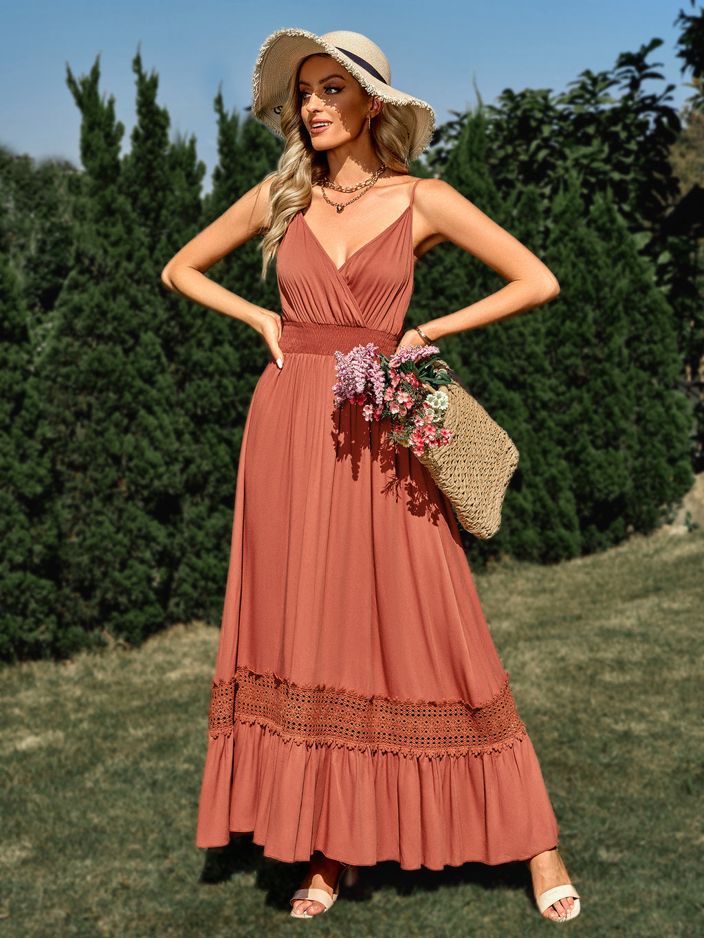 女子無袖波西米亞波西米亞時尚的長裙,荷葉邊下擺