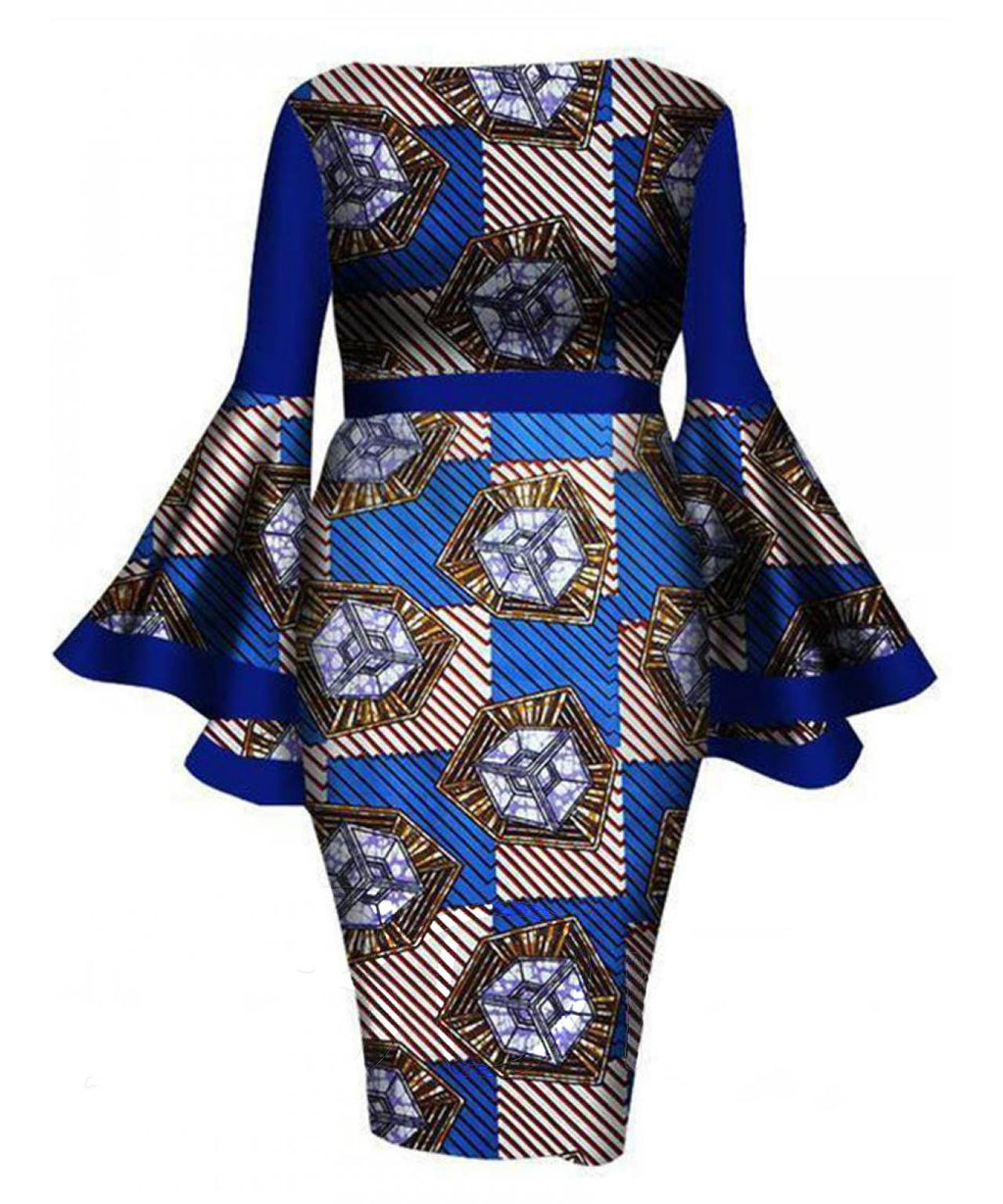 在這款大膽圖案的荷葉邊袖子頸頸連衣裙中,您的身材更加討人喜歡,並為您的外觀增添了風格。