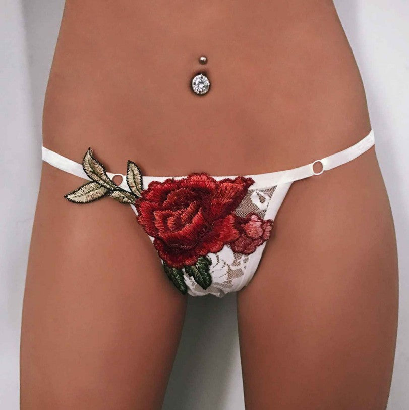 這個玫瑰主題女性柔滑的彈性腰圍誘人而時尚,既舒適又可愛。它具有帶有鼻孔的花卉細節的蕾絲正面,有兩種顏色。